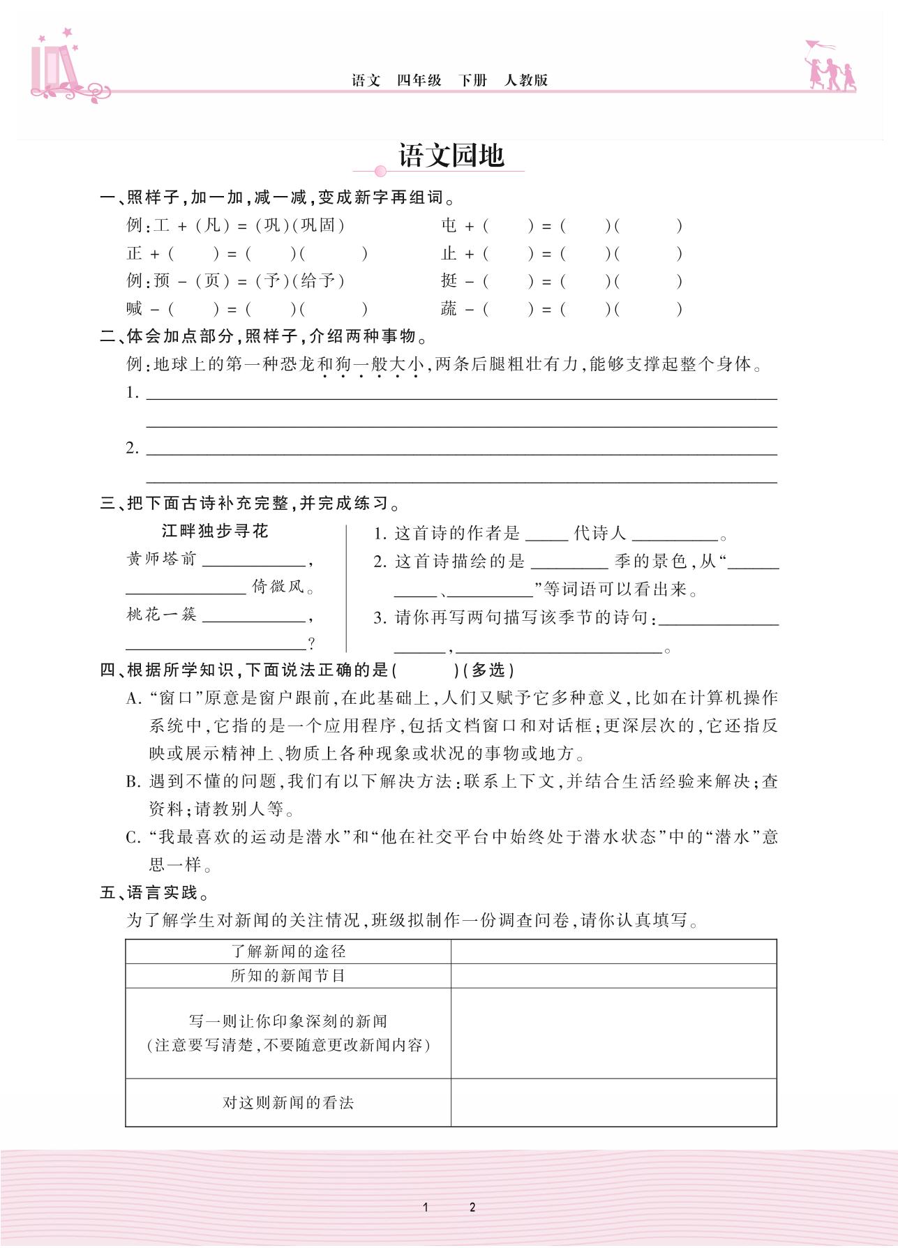 2021下册四年级语文人教版 第二单元——语文园地