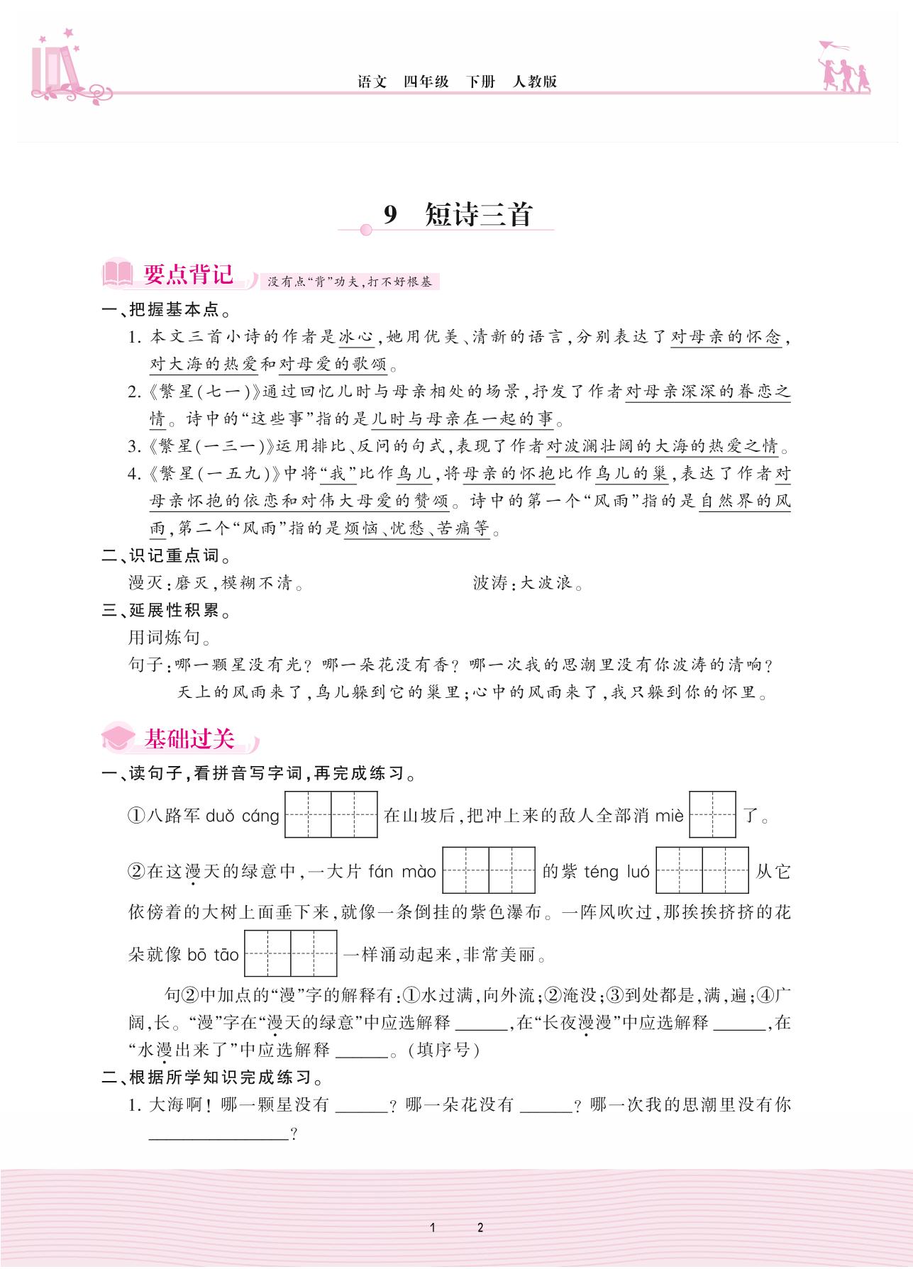 2021下册四年级语文人教版 第三单元——9 短诗三首