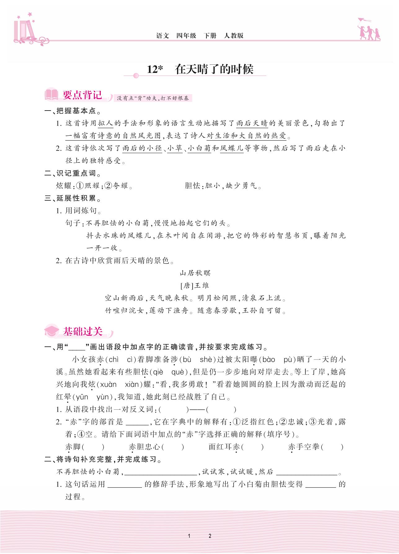 2021下册四年级语文人教版 第三单元——12 在天晴了的时候