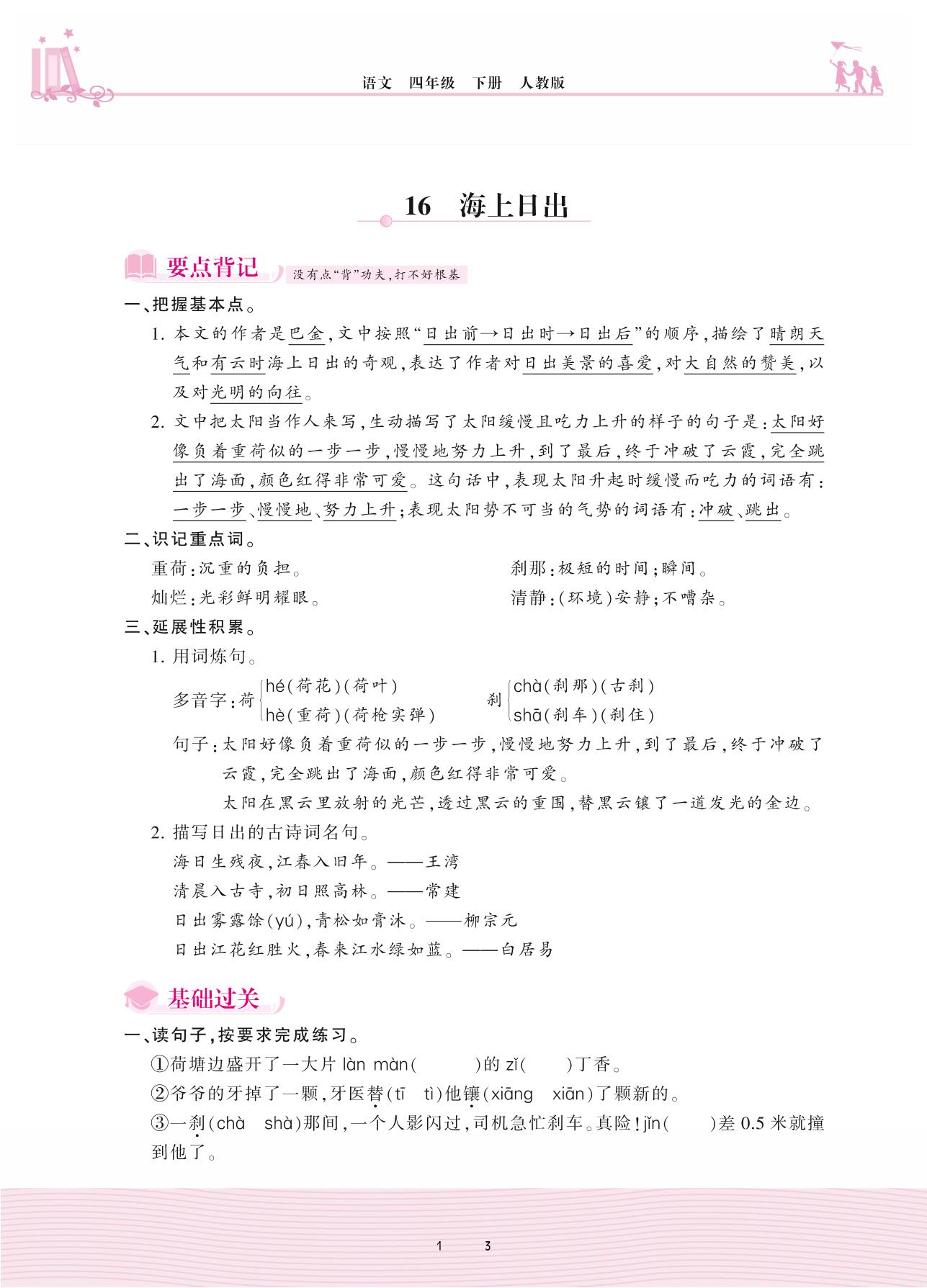 2021下册四年级语文人教版 第五单元——16 海上日出