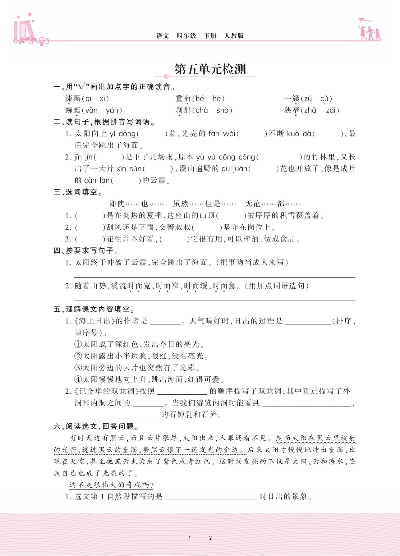 2021下册四年级语文人教版 第五单元——第五单元检测