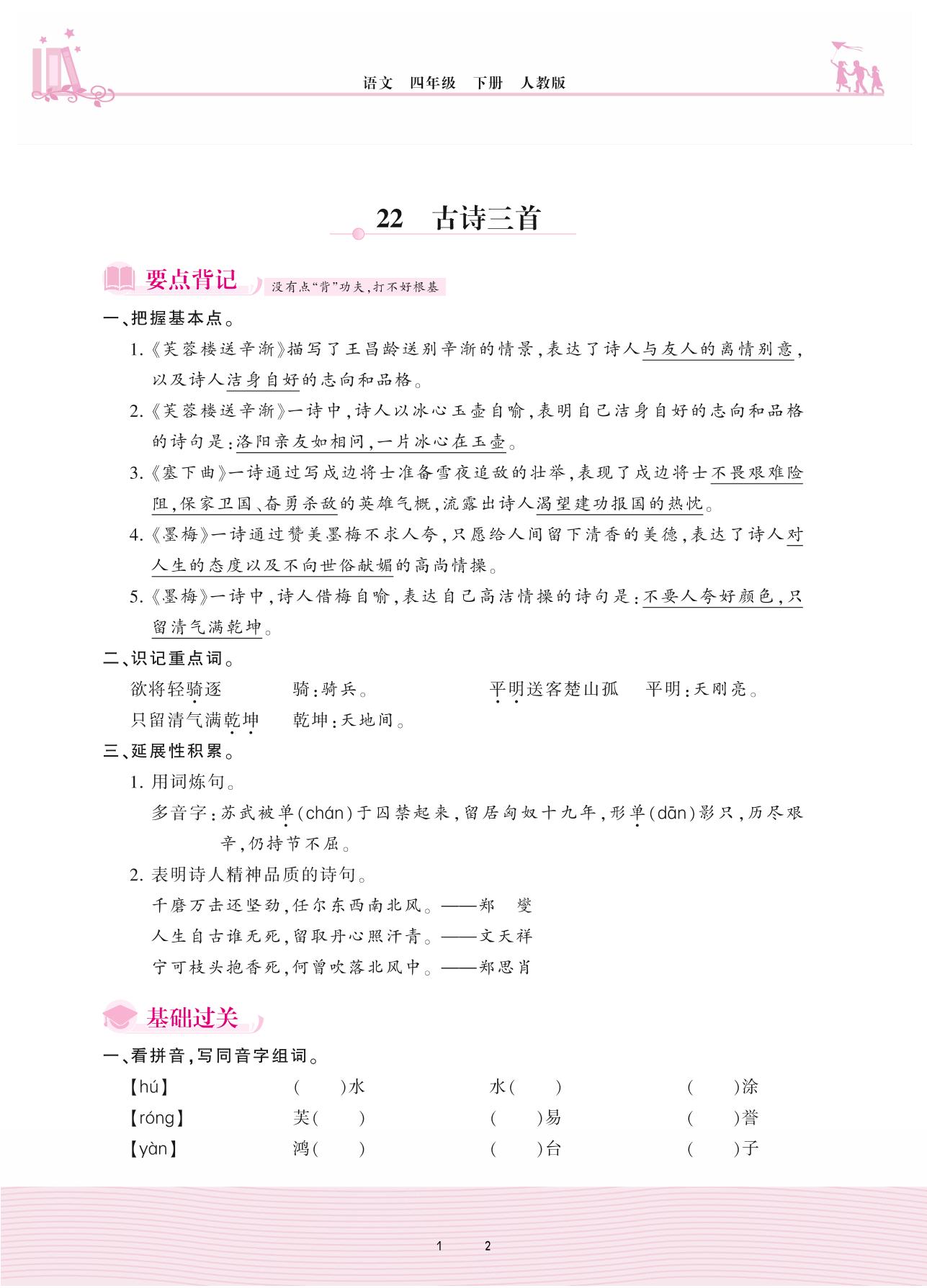 2021下册四年级语文人教版 第七单元——22 古诗三首