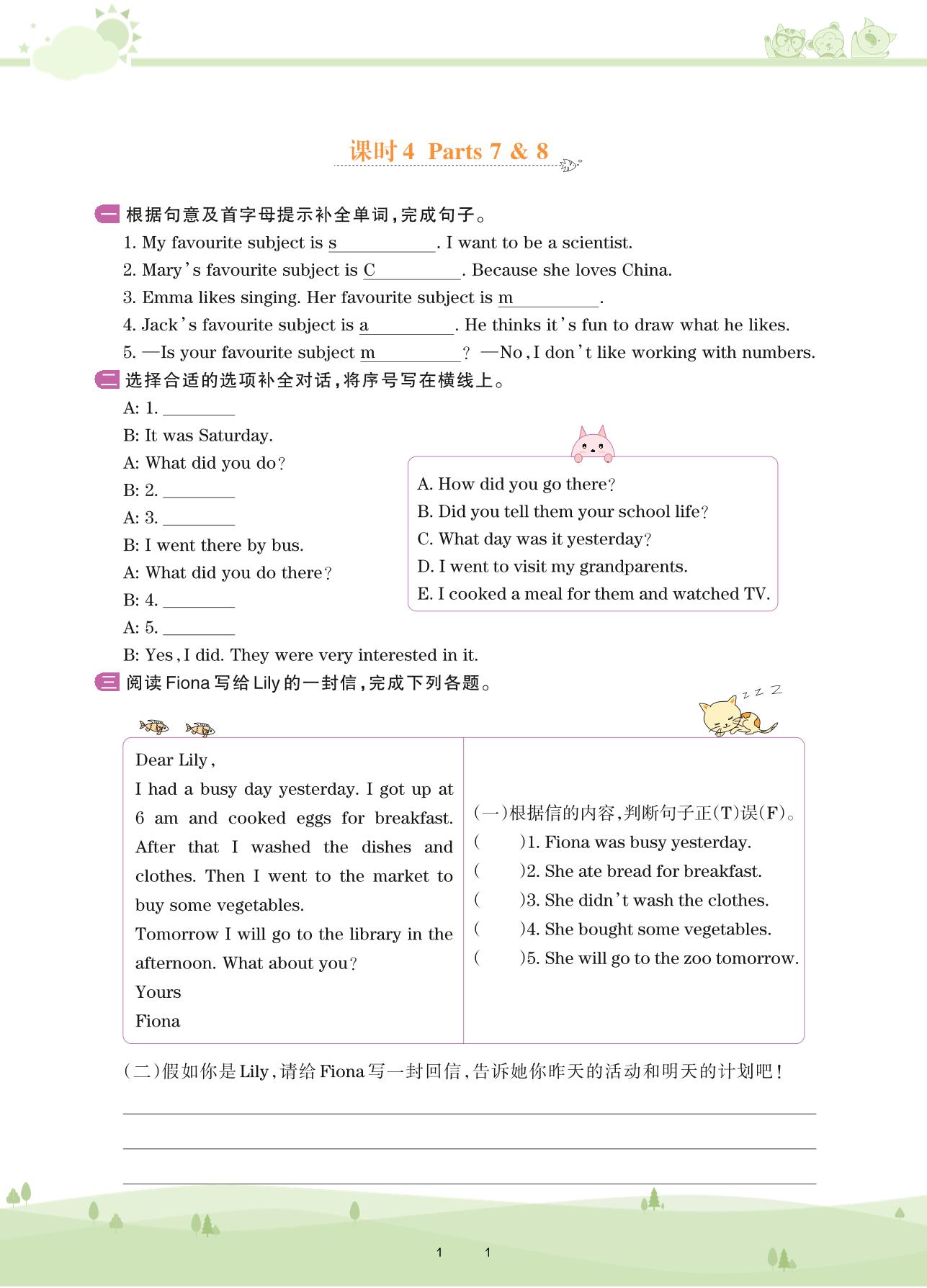 2021下册六年级英语剑桥版 Starter unit Join us—课时 4 Parts 7 & 8