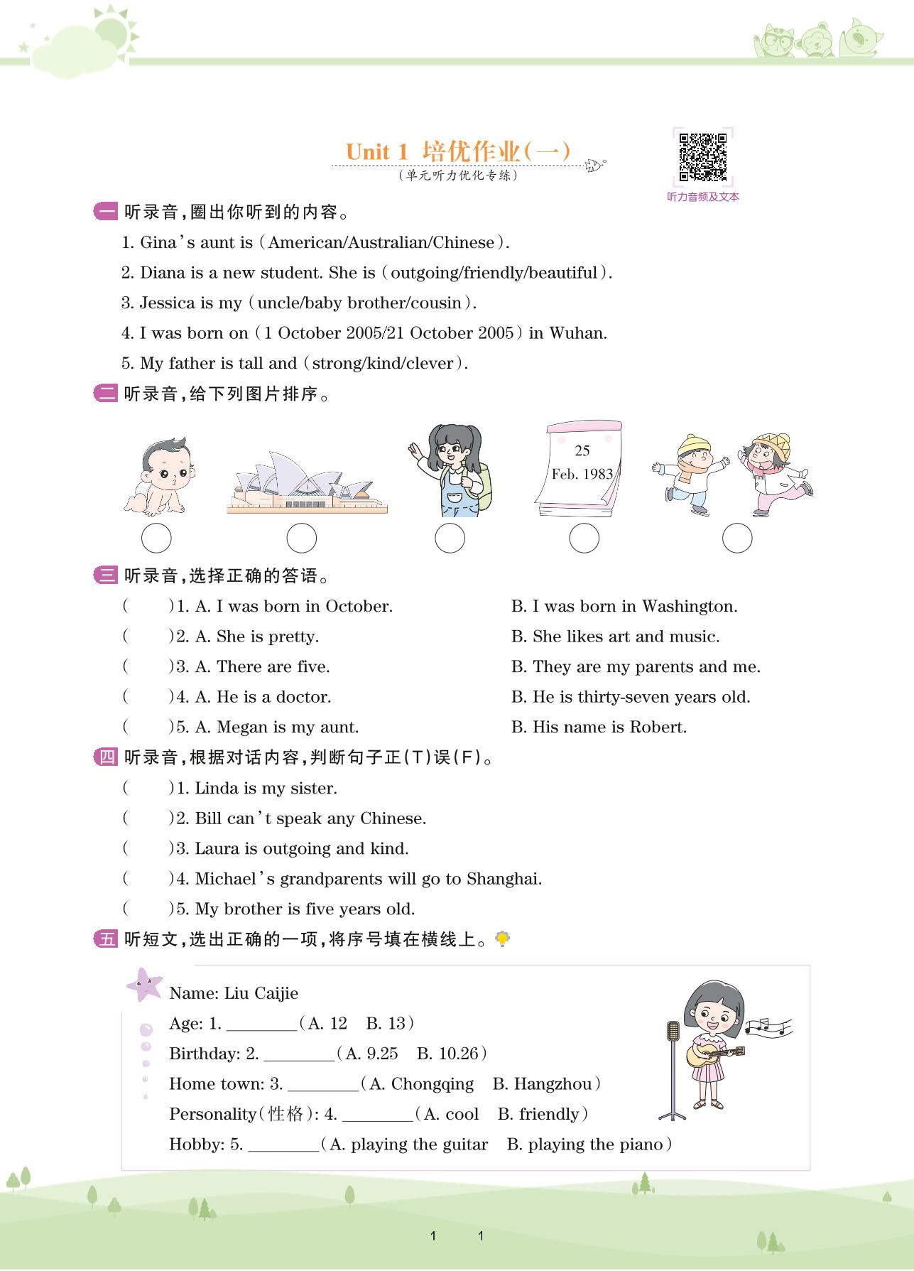 2021下册六年级英语剑桥版 Unit 1 培优作业(一)