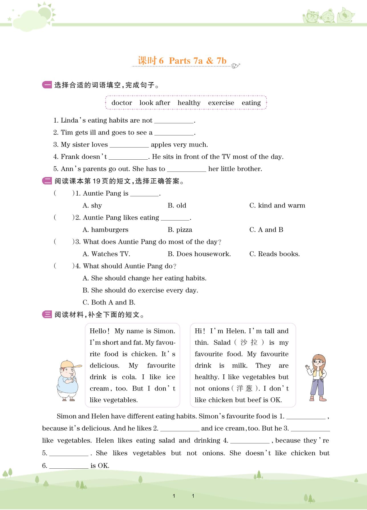 2021下册六年级英语剑桥版 Unit 2—课时 6 Parts 7a & 7b