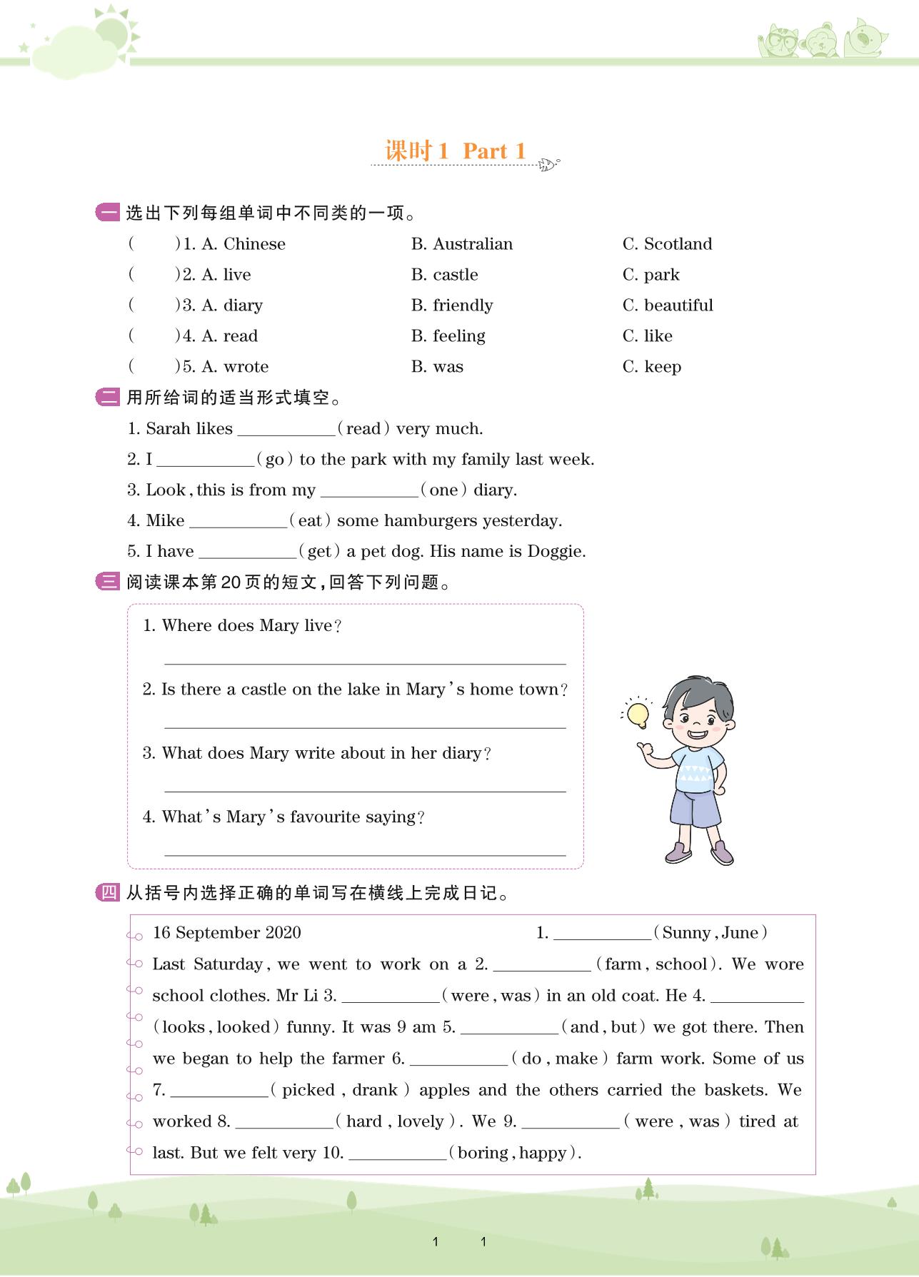 六年级英语剑桥版下册课时作业