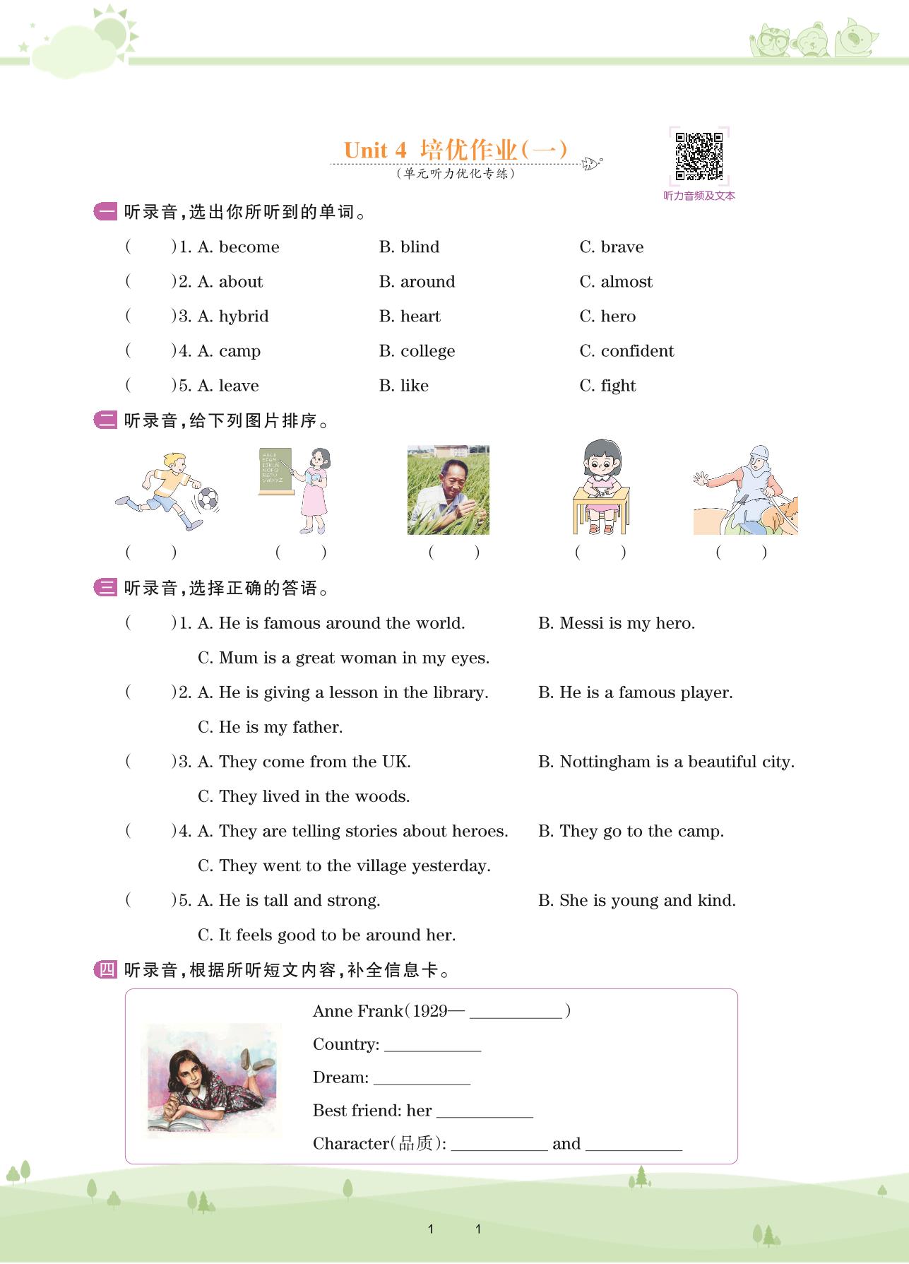 2021下册六年级英语剑桥版 Unit 4 培优作业(一)