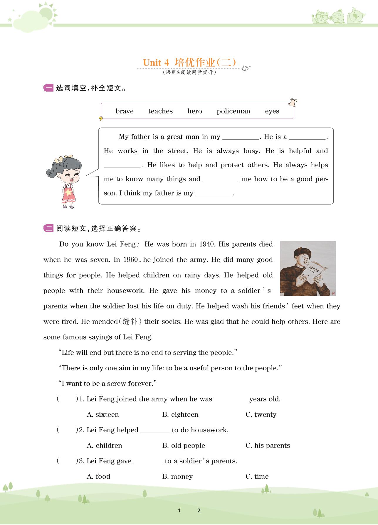 2021下册六年级英语剑桥版 Unit 4 培优作业(二)