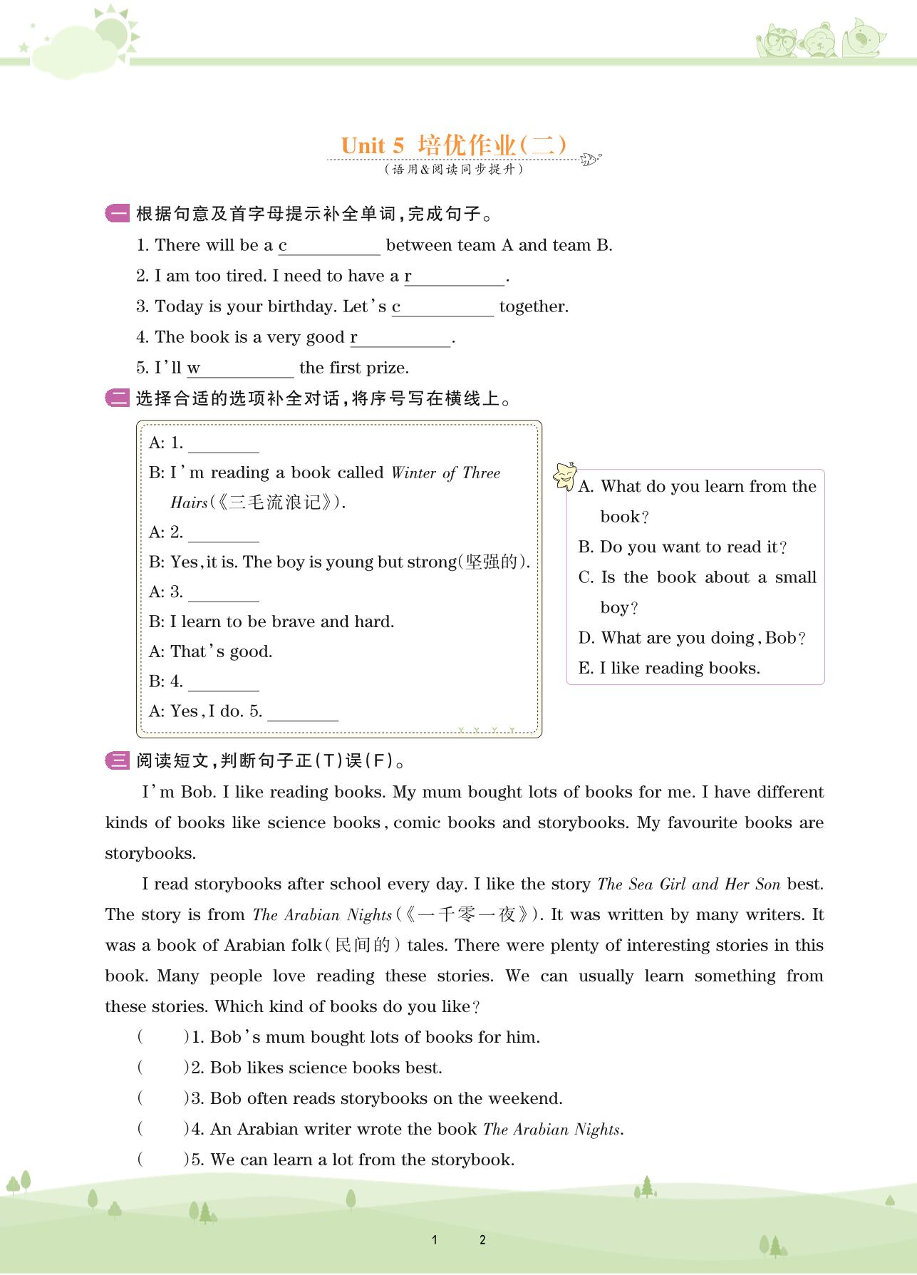 2021下册六年级英语剑桥版 Unit 5 培优作业(二)