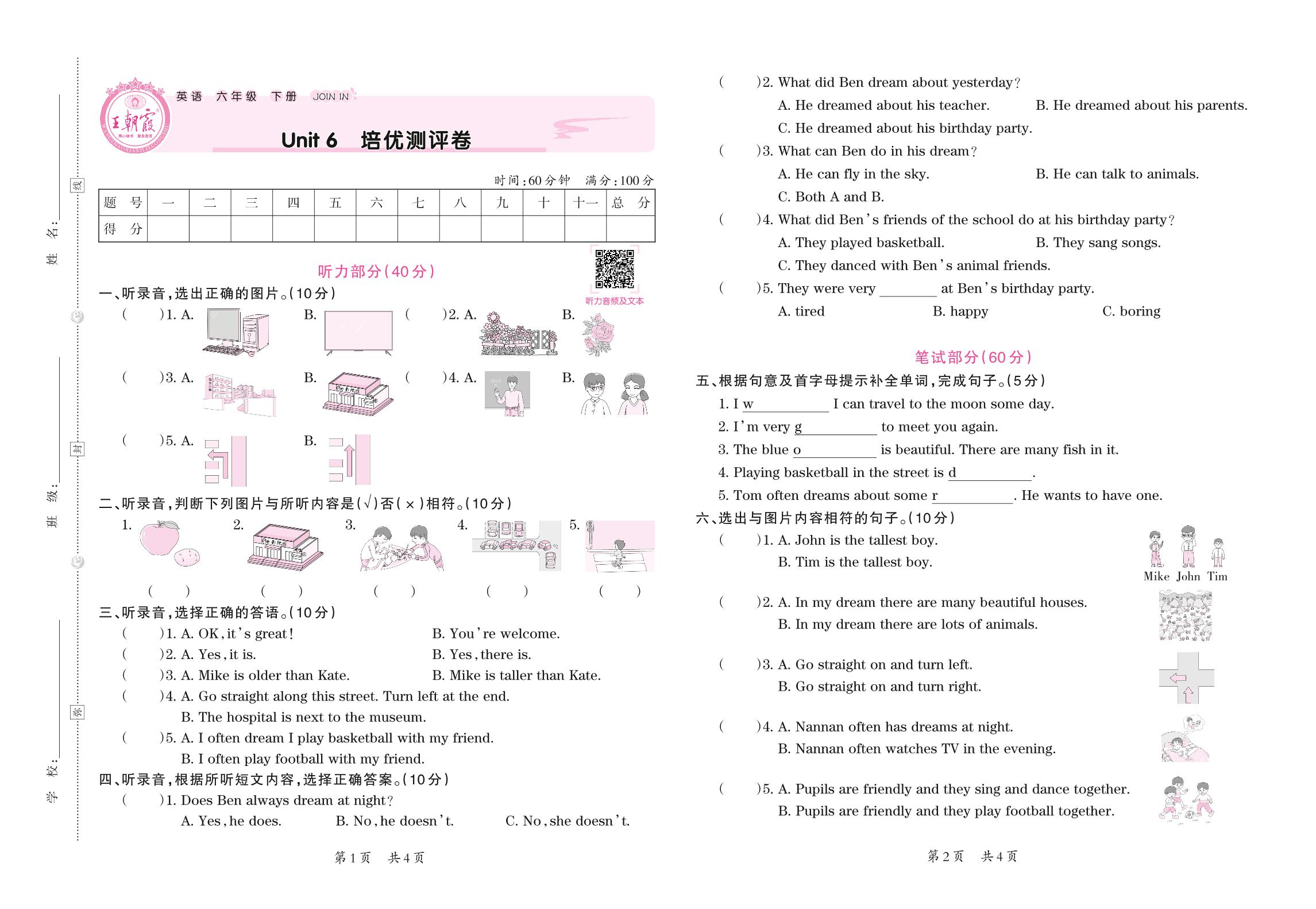 2021下册六年级英语剑桥版 Unit 6 培优测评卷