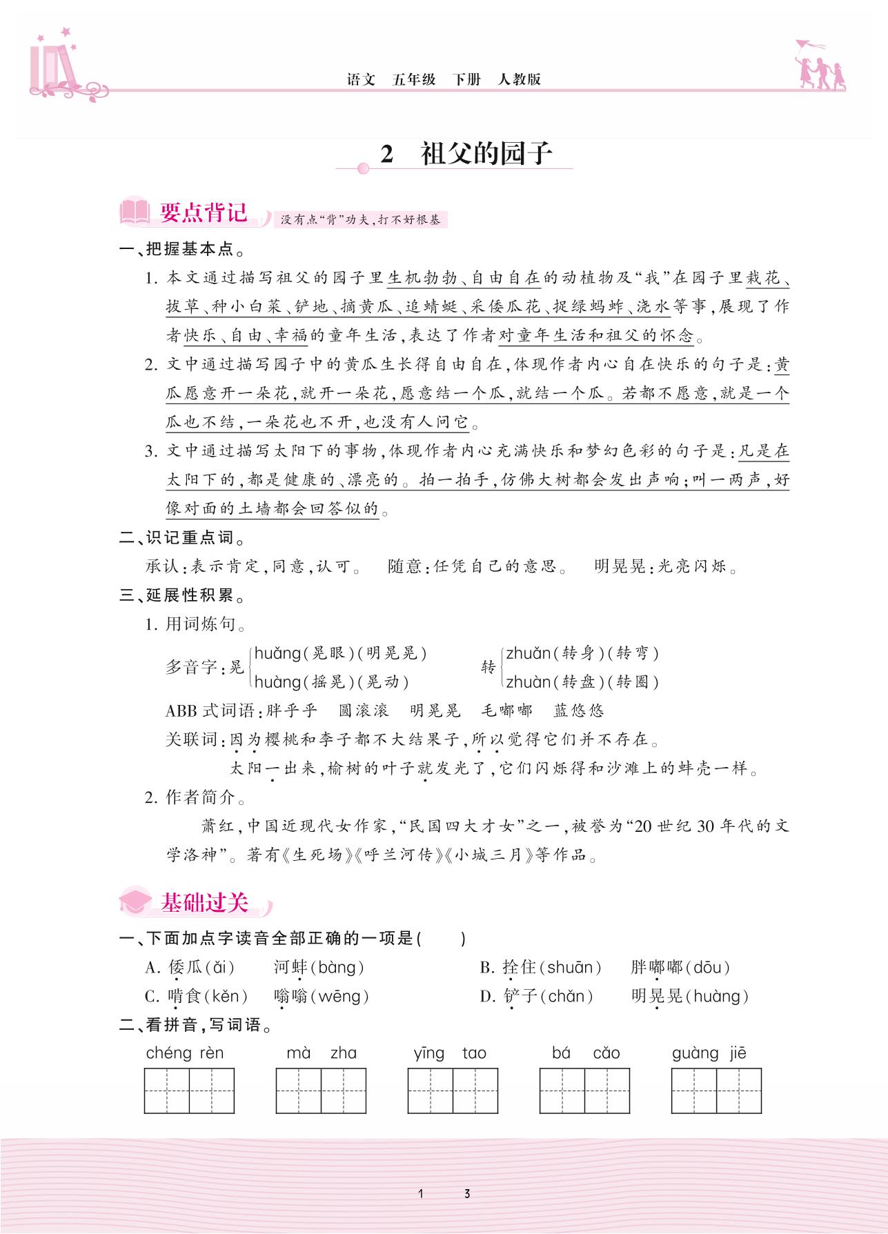 2021下册五年级语文人教版 第一单元——2 祖父的园子