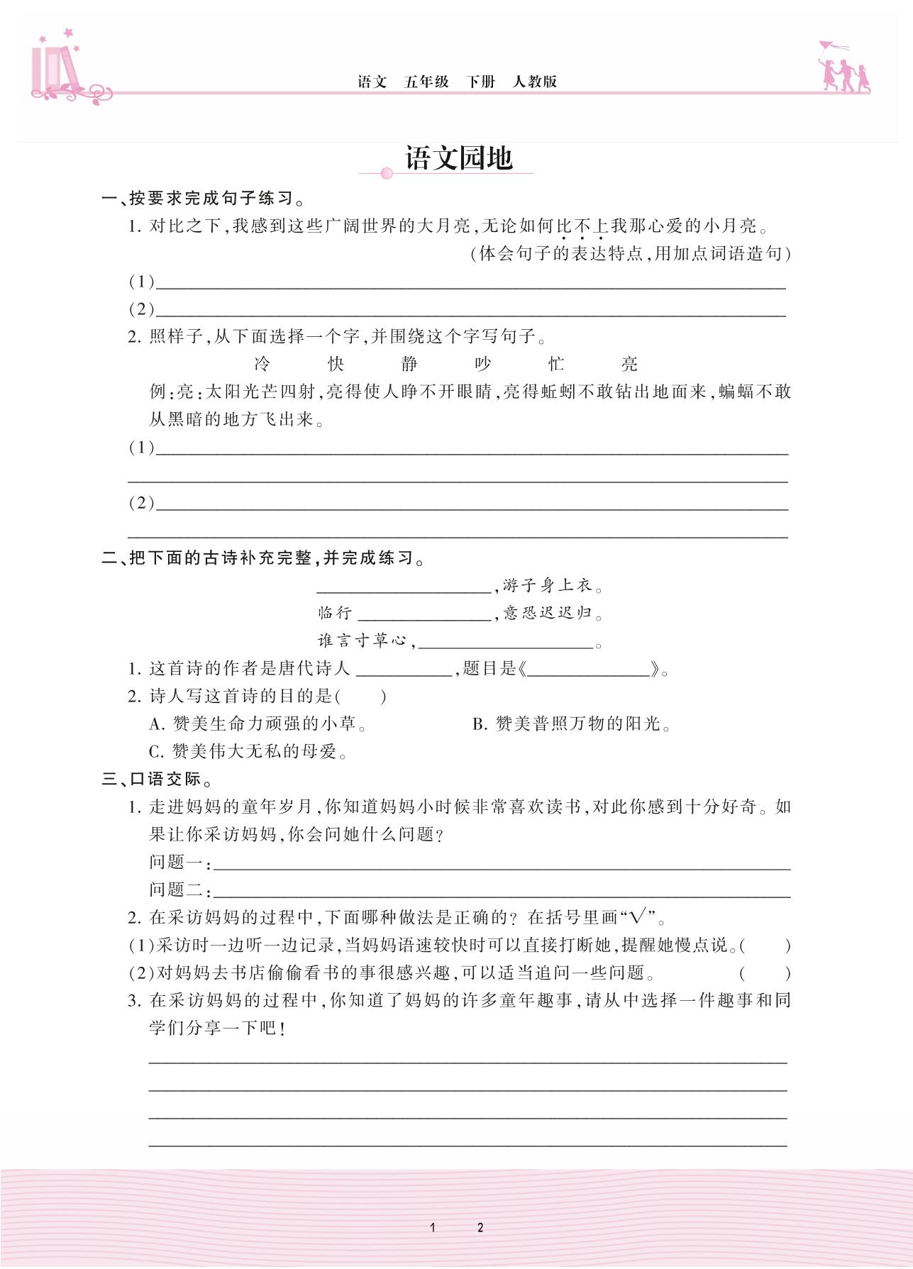 2021下册五年级语文人教版 第一单元——语文园地_R210923141053327