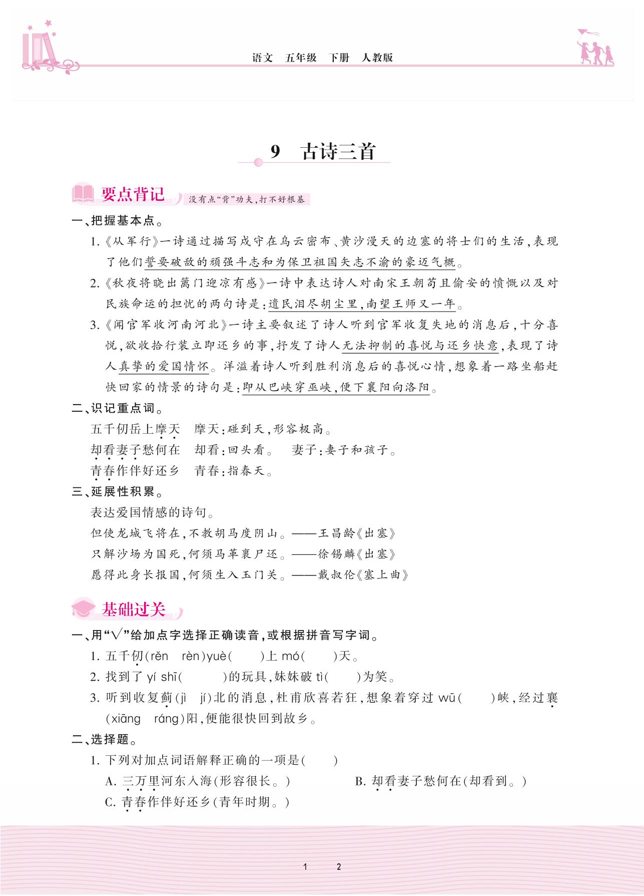 2021下册五年级语文人教版 第四单元——9 古诗三首