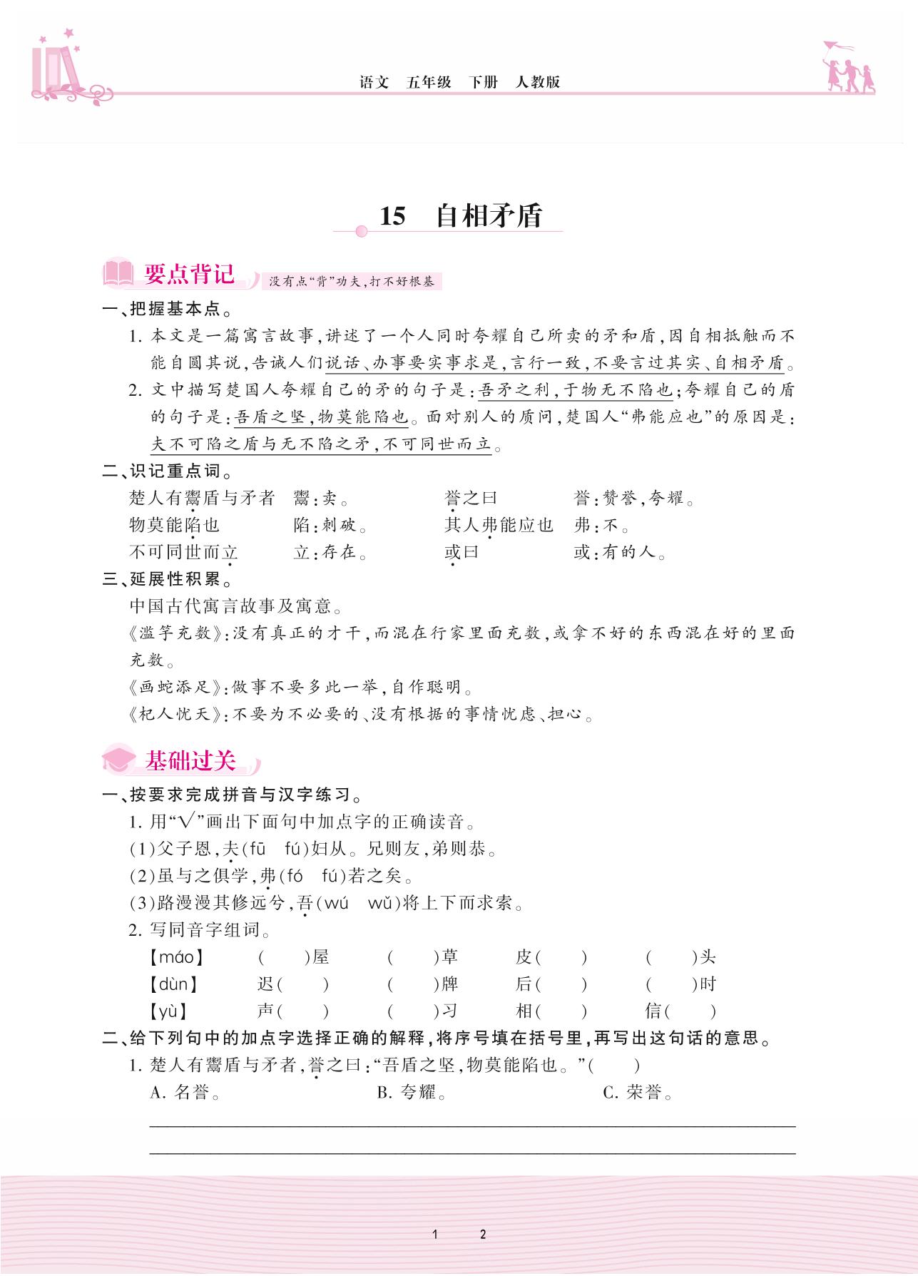 2021下册五年级语文人教版 第六单元——15 自相矛盾