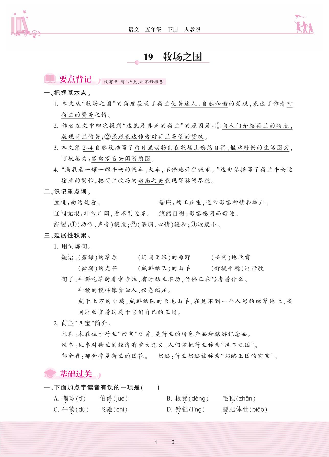 2021下册五年级语文人教版 第七单元——19 牧场之国