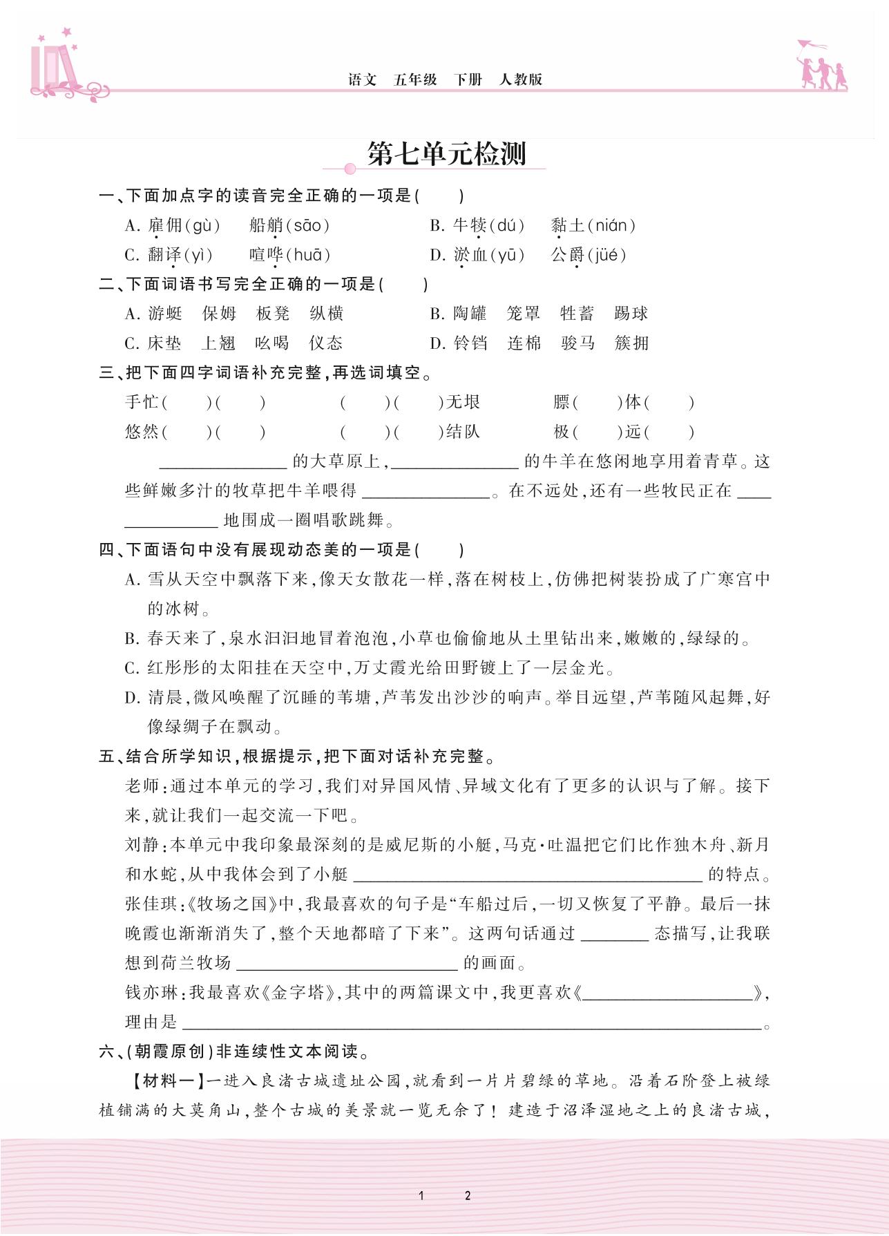 2021下册五年级语文人教版 第七单元——第七单元检测