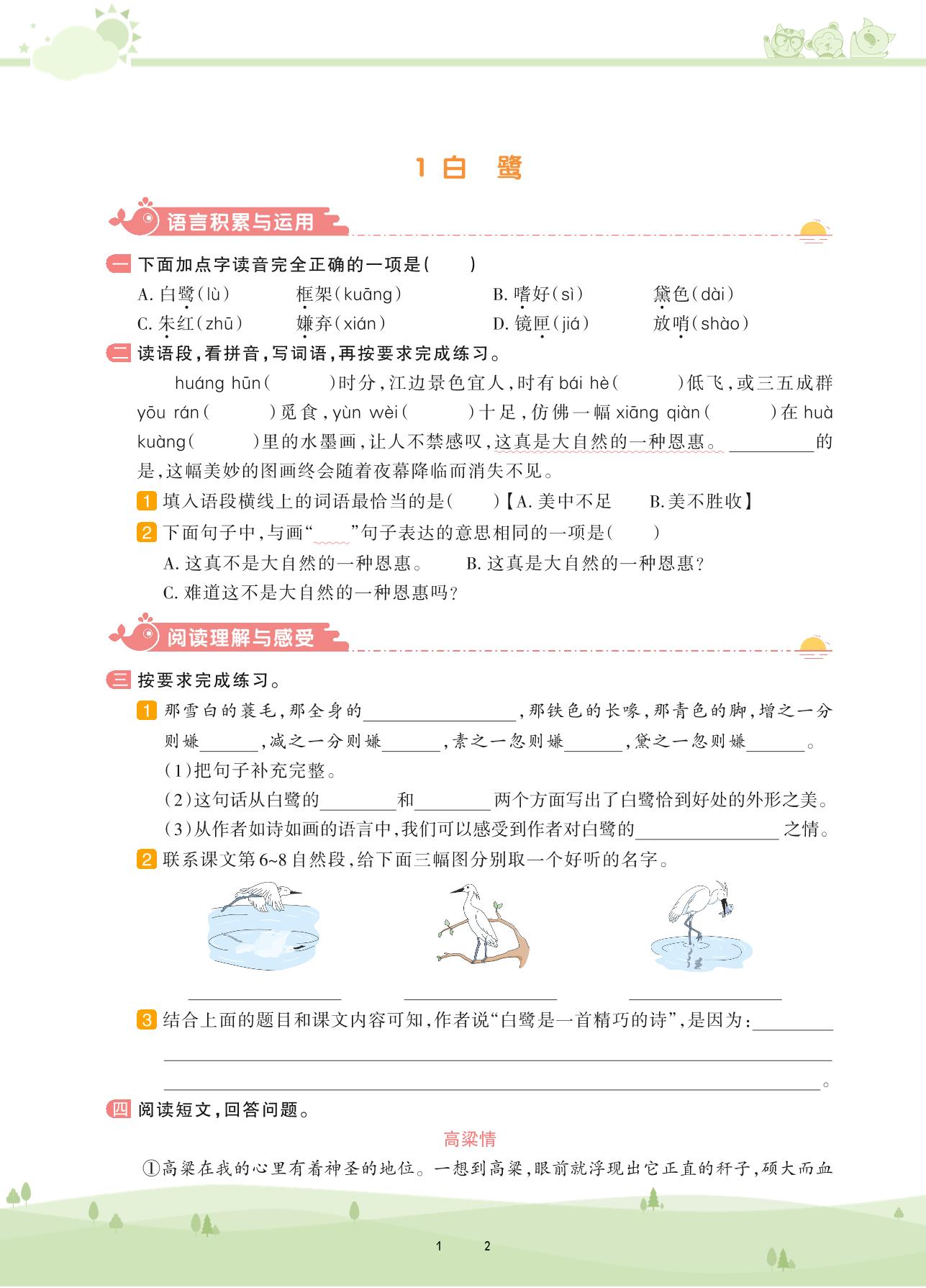 2020上册五年级语文人教版 第一单元——1 白鹭
