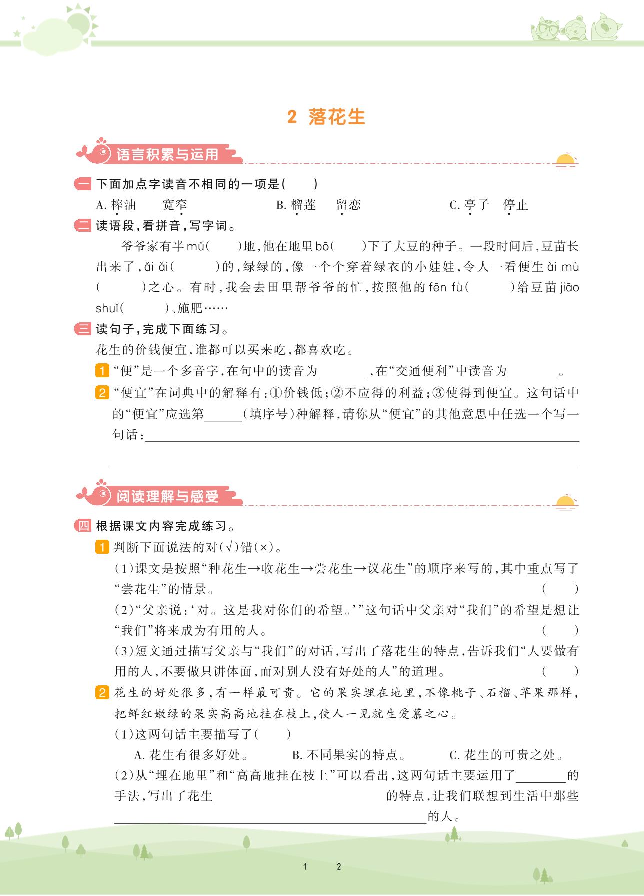 2020上册五年级语文人教版 第一单元——2 落花生