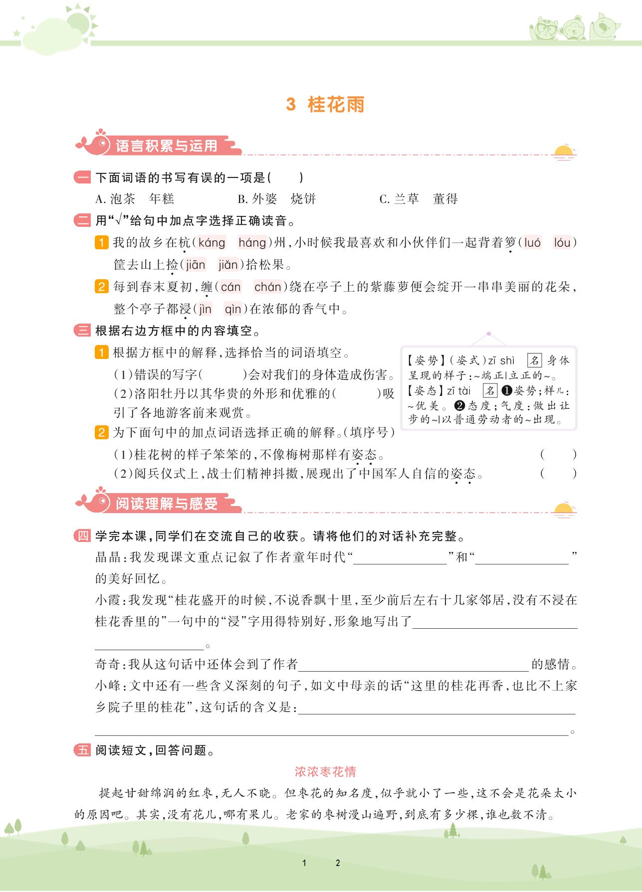 2020上册五年级语文人教版 第一单元——3 桂花雨