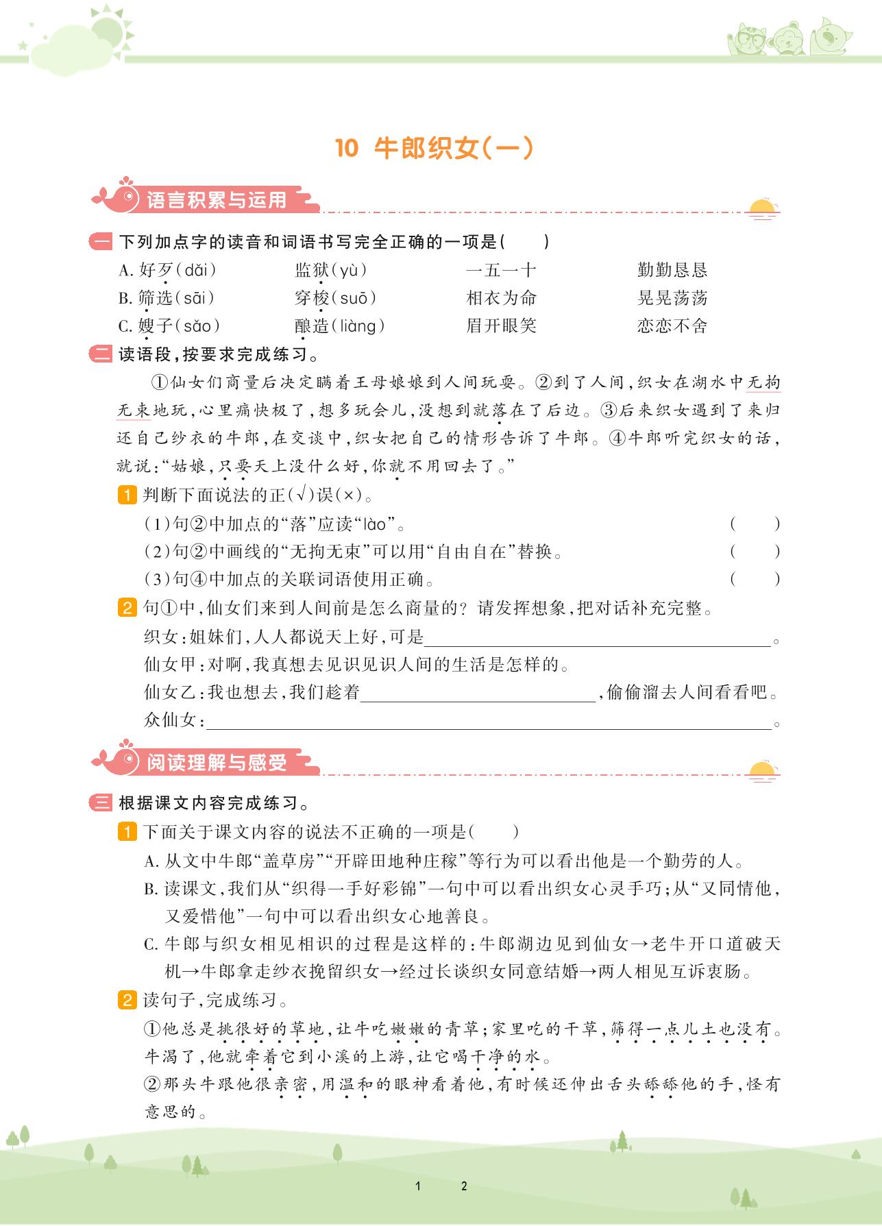 2020上册五年级语文人教版 第三单元——10 牛郎织女(一)