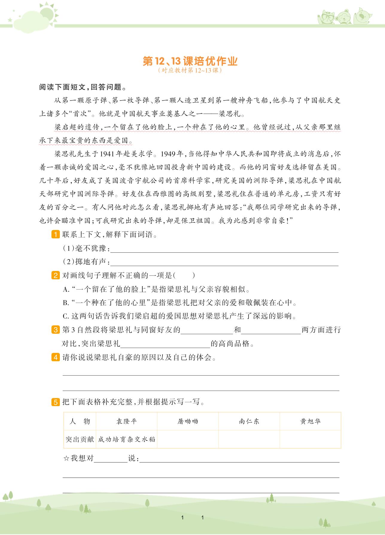 2020上册五年级语文人教版 第四单元——第12、13课培优作业
