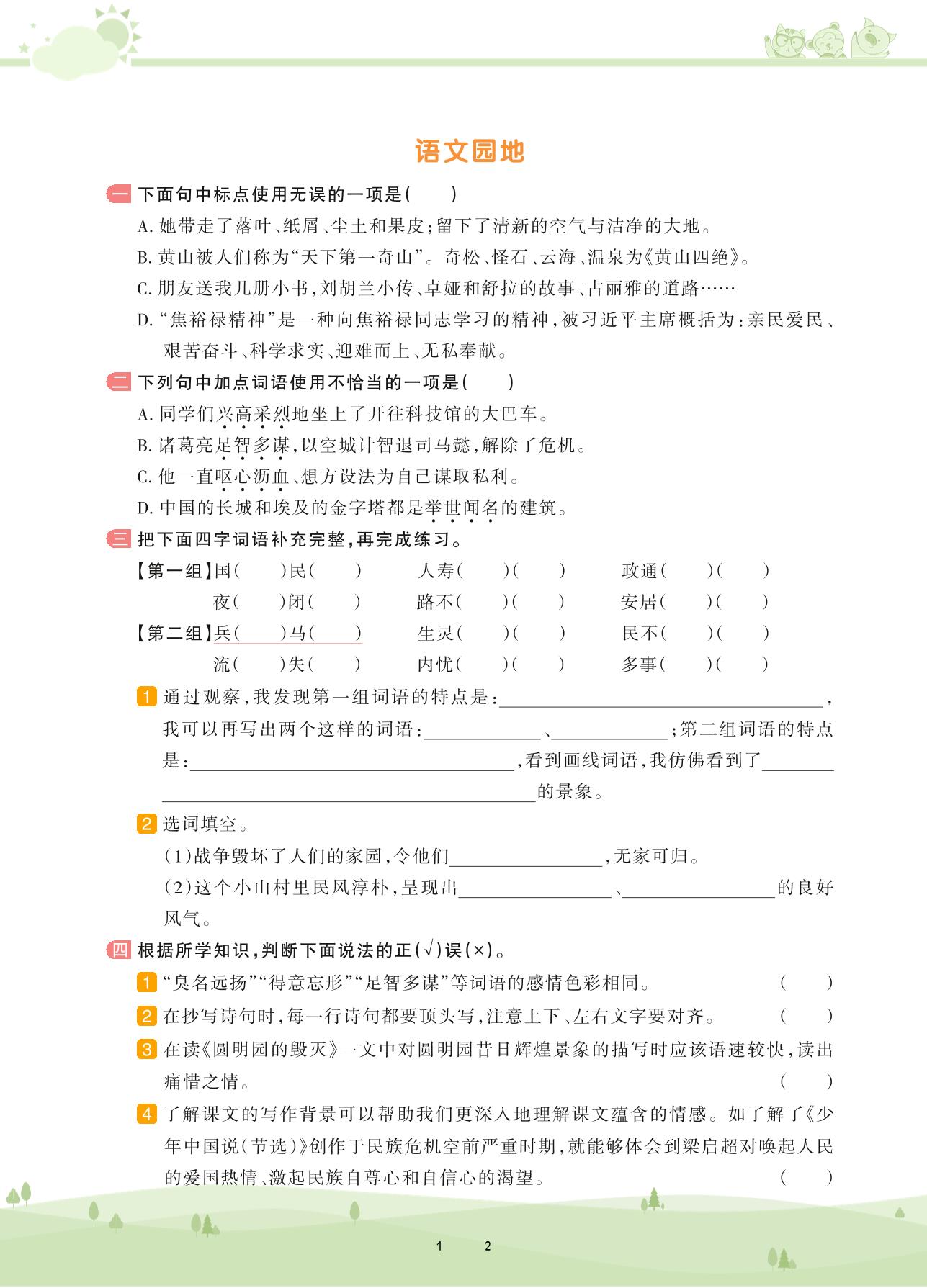 2020上册五年级语文人教版 第四单元—— 语文园地