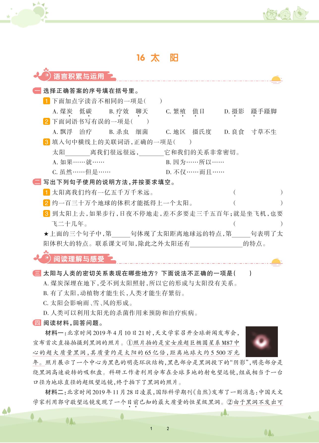 2020上册五年级语文人教版 第五单元——16 太阳