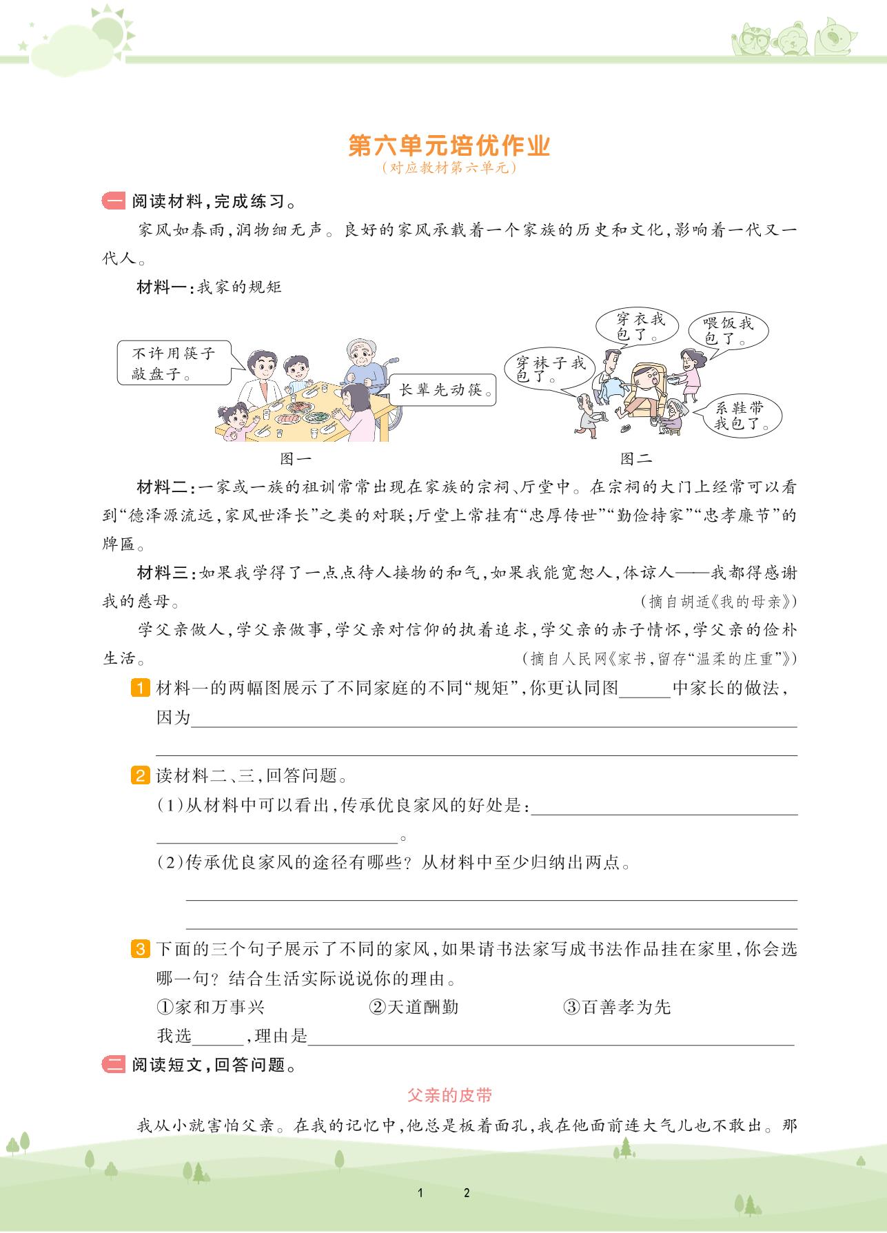 2020上册五年级语文人教版 第六单元培优作业