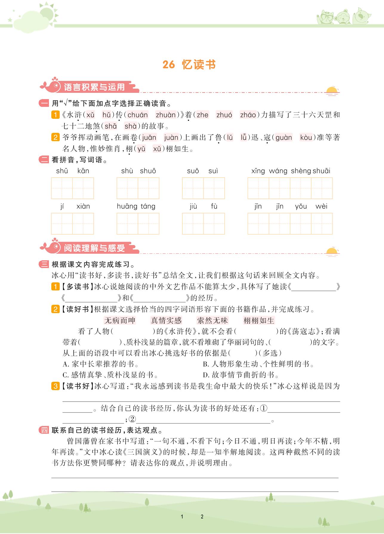 2020上册五年级语文人教版 第八单元——26 忆读书