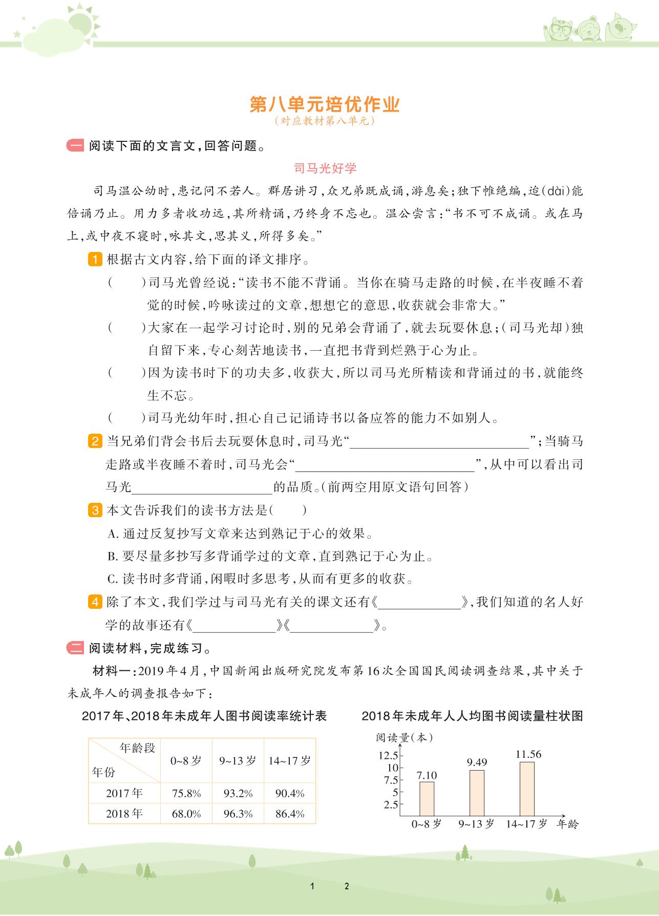 2020上册五年级语文人教版 第八单元培优作业