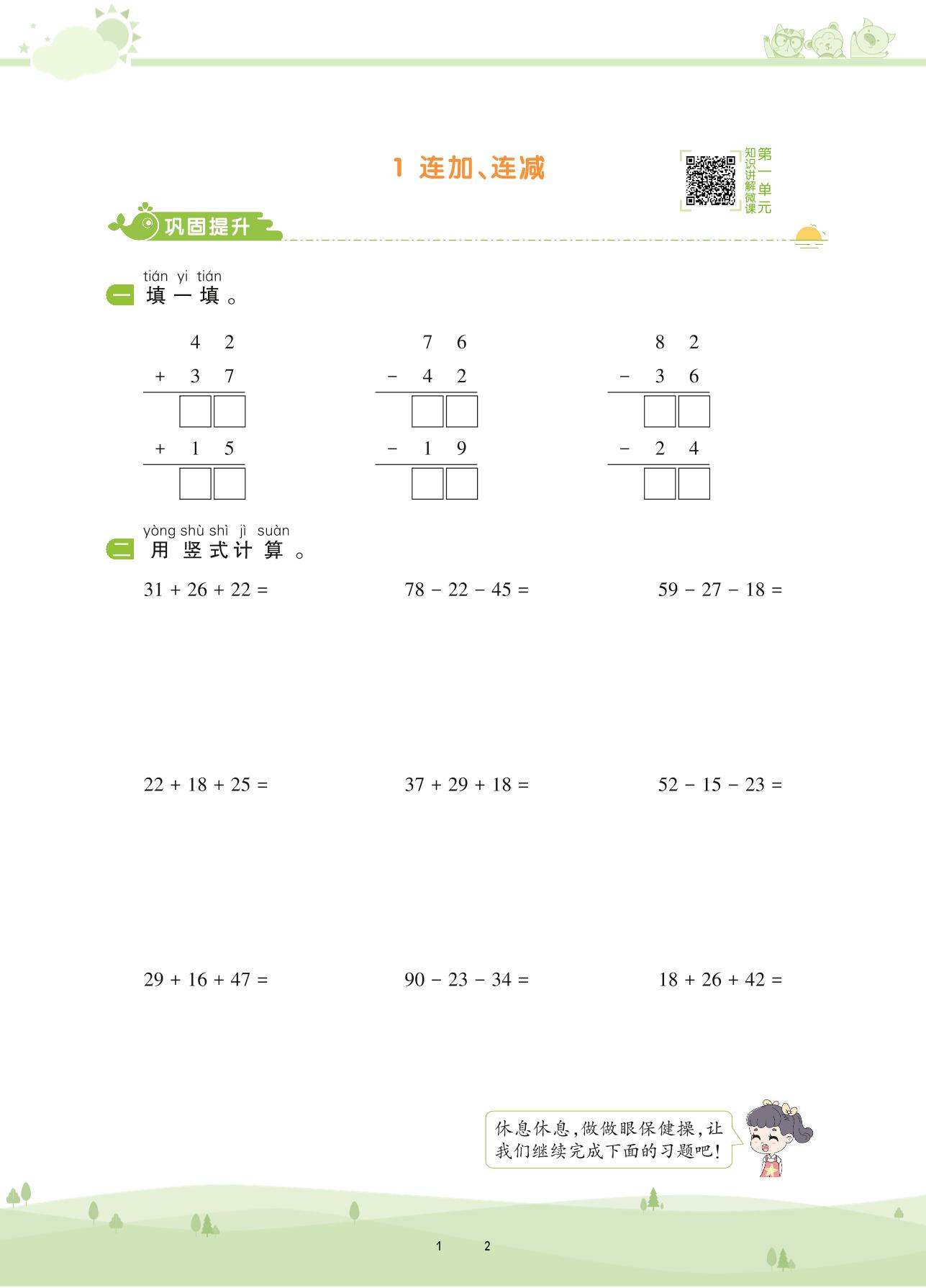 2020上册二年级数学苏教版 第一单元 100以内的加法和减法(三)——1 连加、连减