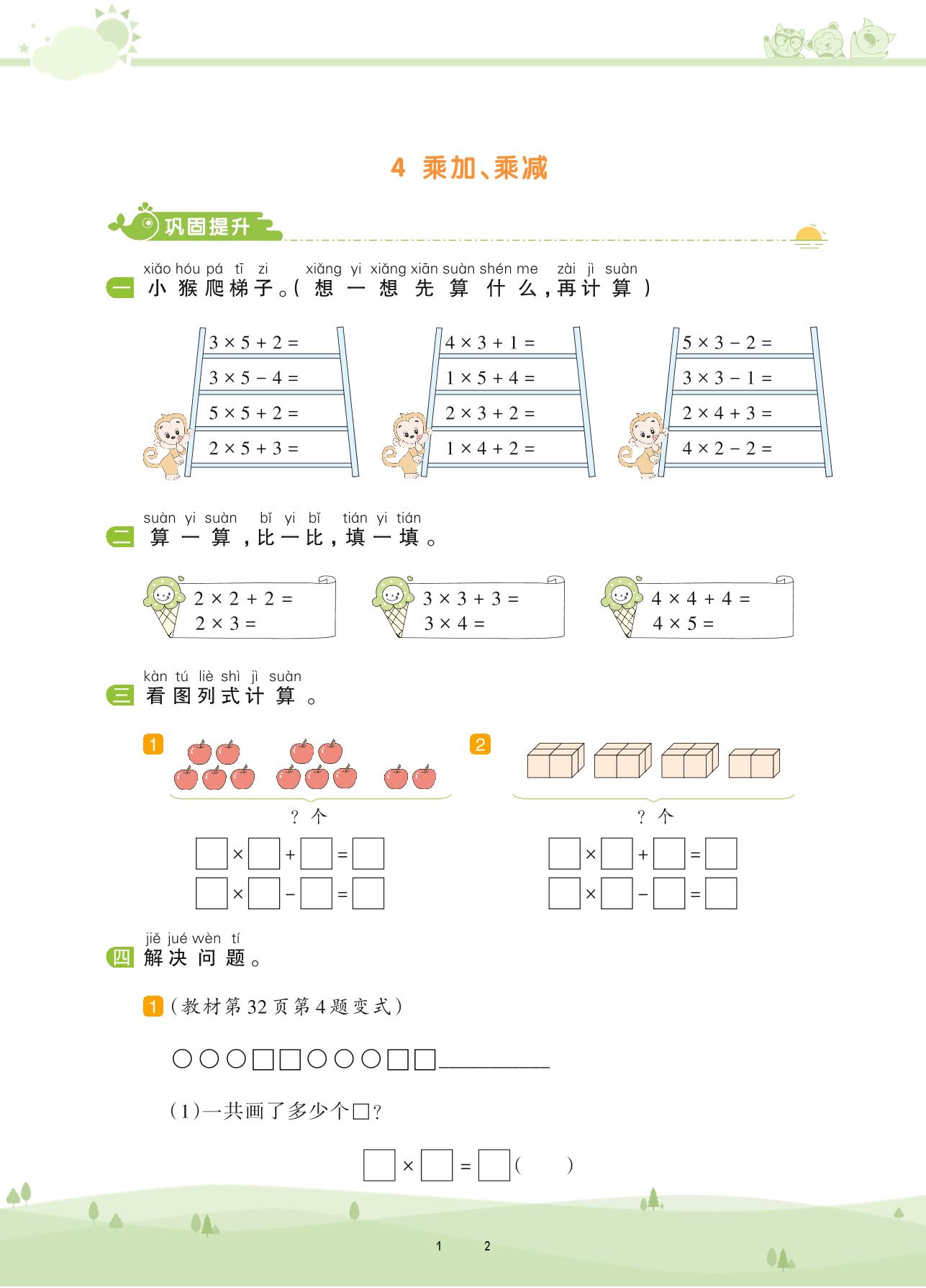 2020上册二年级数学苏教版 第三单元 表内乘法(一)——4 乘加、乘减