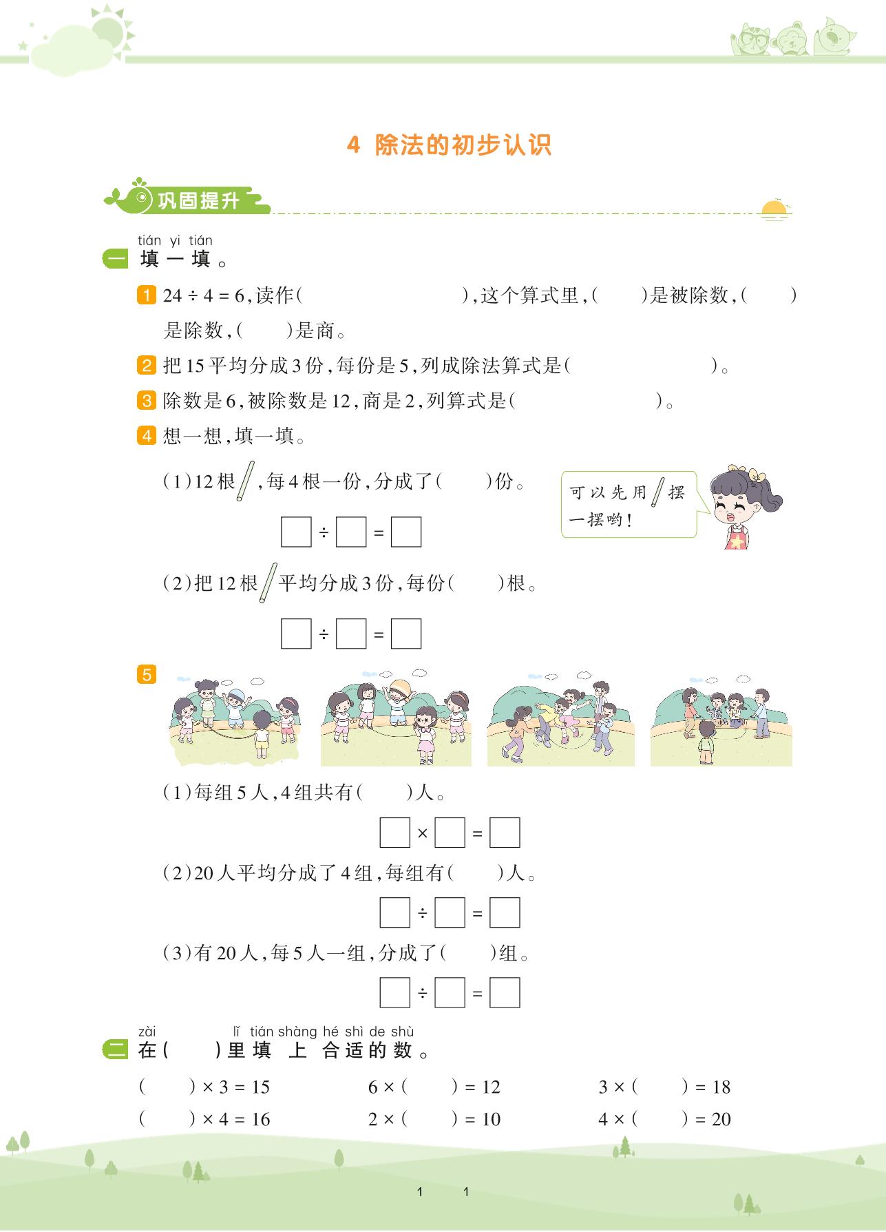 2020上册二年级数学苏教版 第四单元 表内除法(一)——4 除法的初步认识