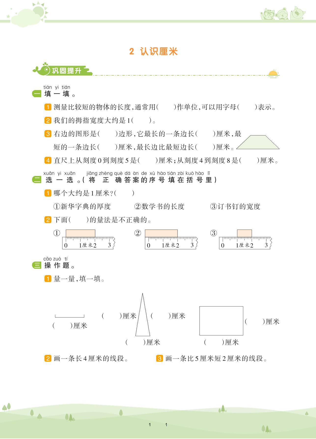 2020上册二年级数学苏教版 第五单元 厘米和米——2 认识厘米