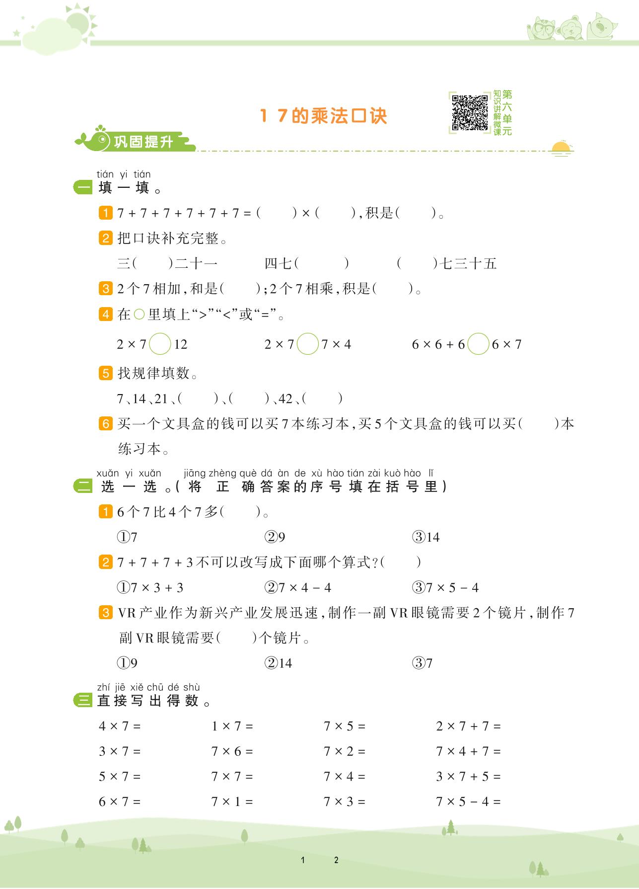 2020上册二年级数学苏教版 第六单元 表内乘法和表内除法(二)——1 7的乘法口诀