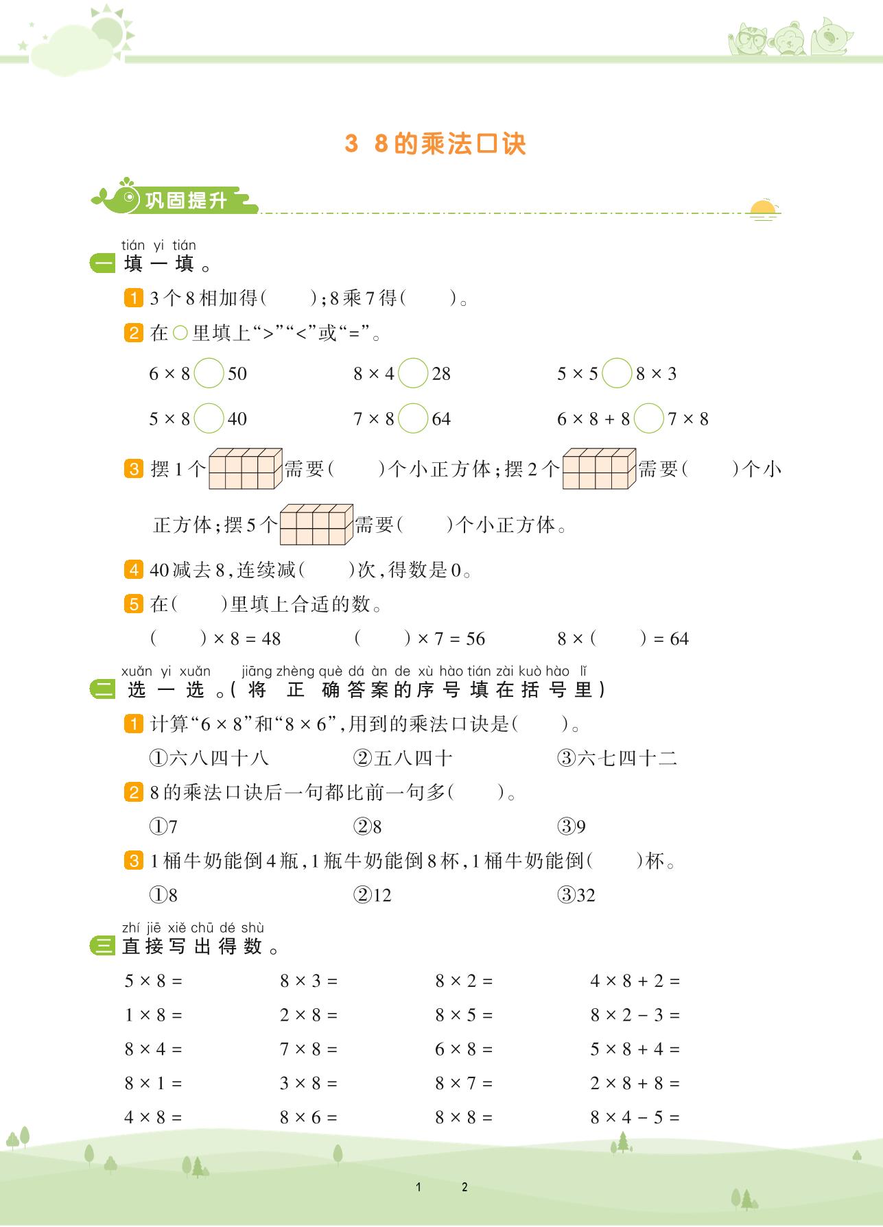 2020上册二年级数学苏教版 第六单元 表内乘法和表内除法(二)——3 8的乘法口诀