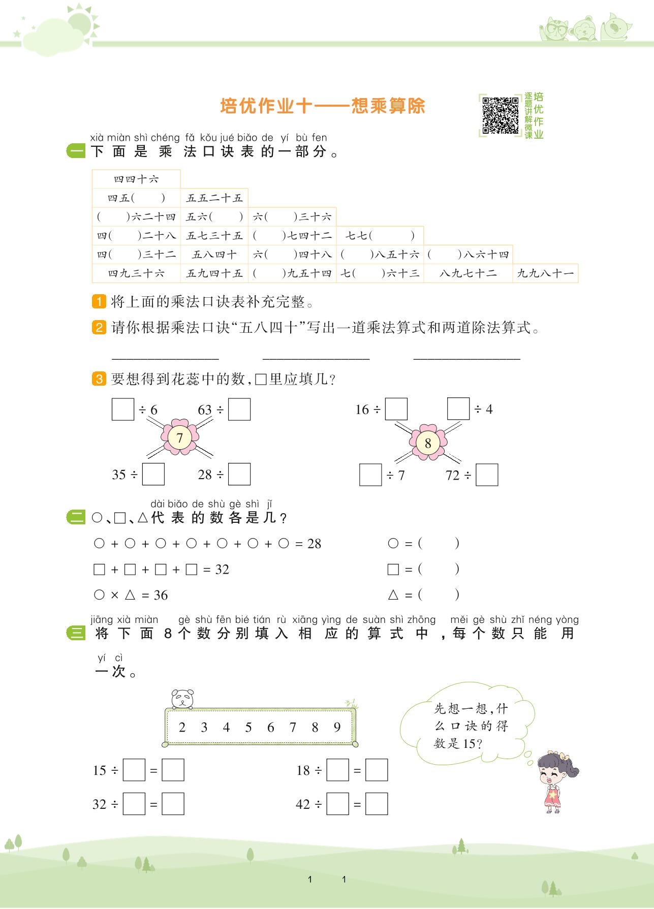 2020上册二年级数学苏教版 第六单元 表内乘法和表内除法(二)——培优作业十 想乘算除