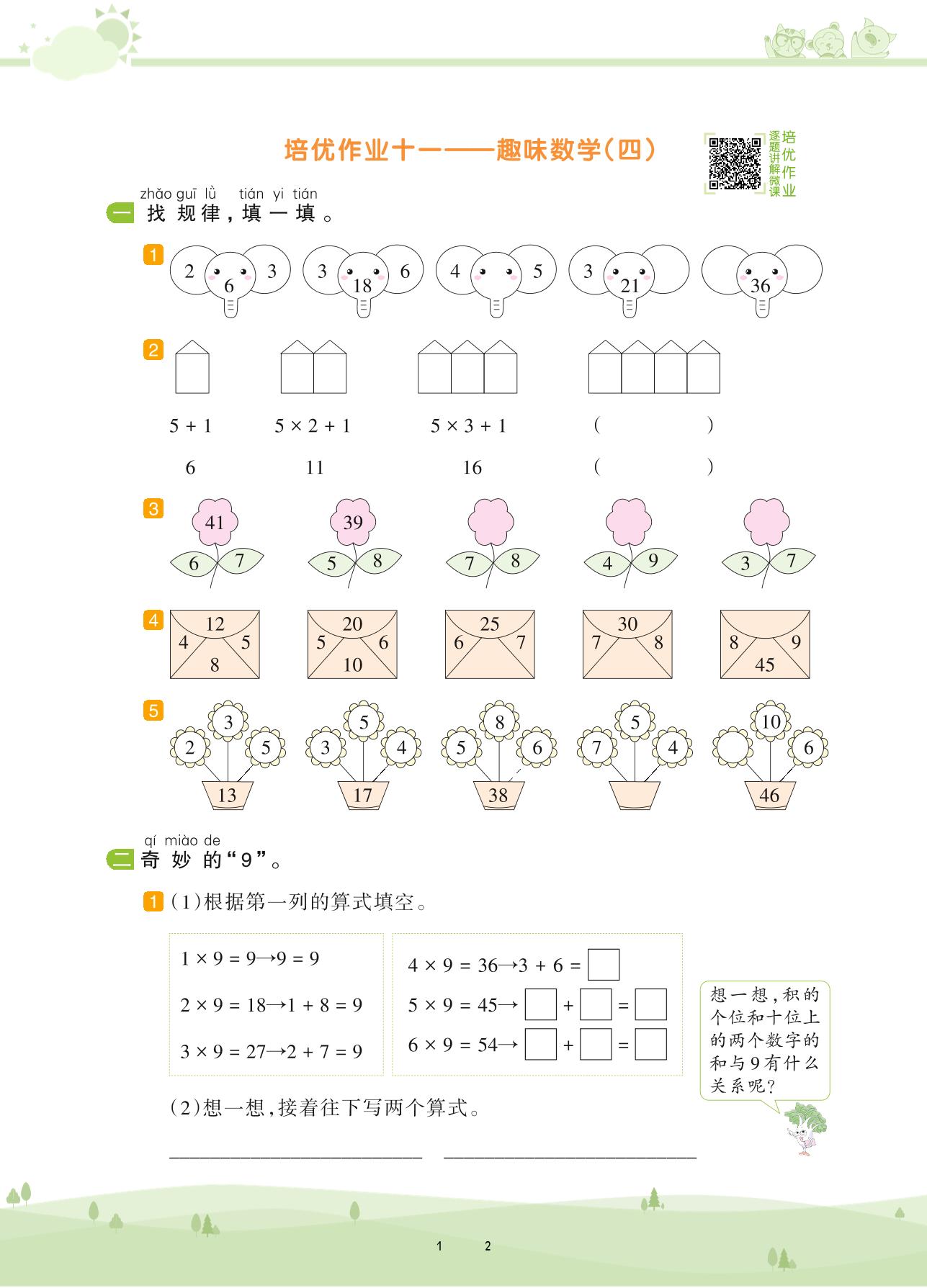 2020上册二年级数学苏教版 第六单元 表内乘法和表内除法(二)——培优作业十一 趣味数学(四)