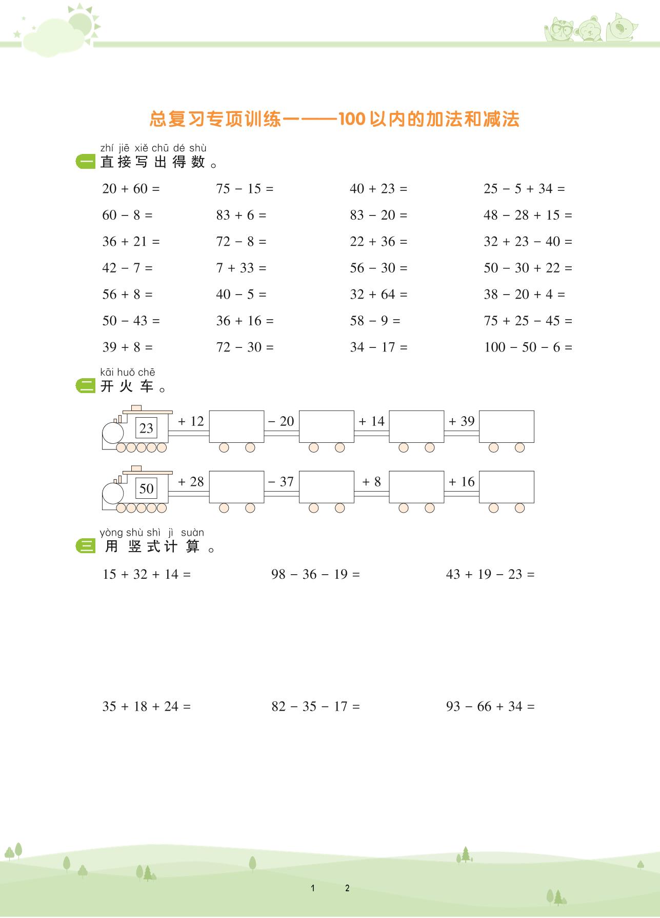 2020上册二年级数学苏教版 第八单元 期末复习——100以内的加法和减法