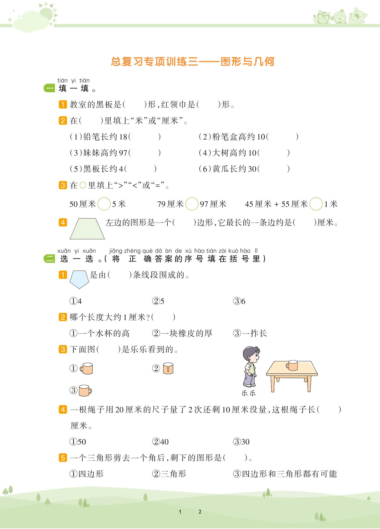2020上册二年级数学苏教版 第八单元 期末复习——图形与几何