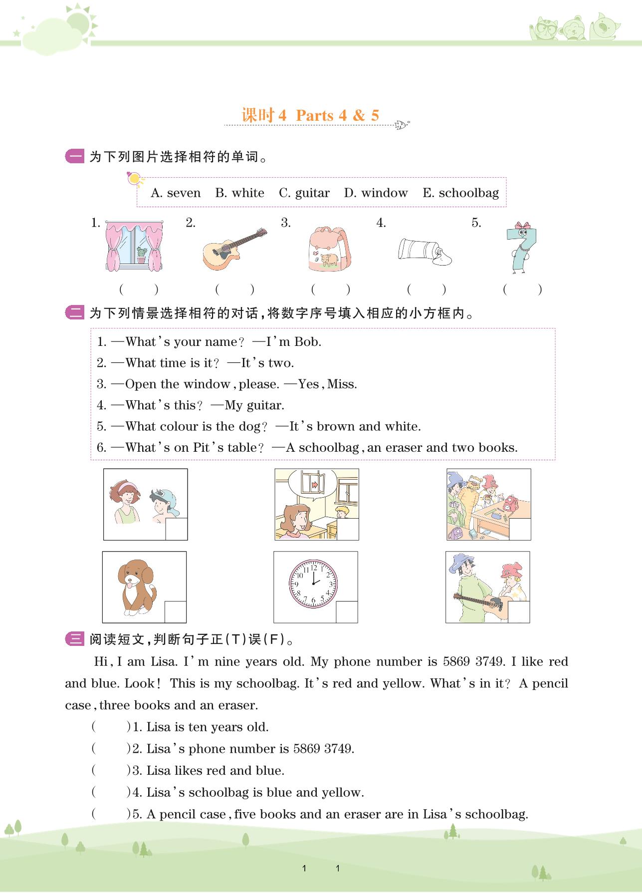 2021下册三年级英语剑桥版 Starter unit Join us—课时4 Parts 4 & 5