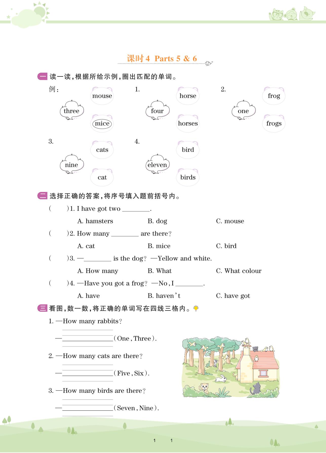 2021下册三年级英语剑桥版 Unit 1—课时4 Parts 5 & 6