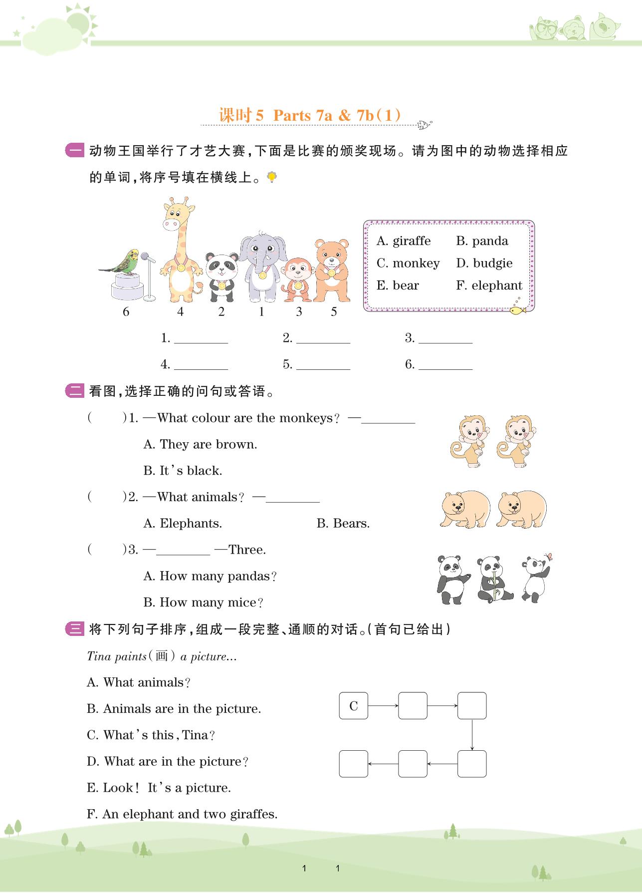 2021下册三年级英语剑桥版 Unit 1—课时5 Parts 7a & 7b(1)