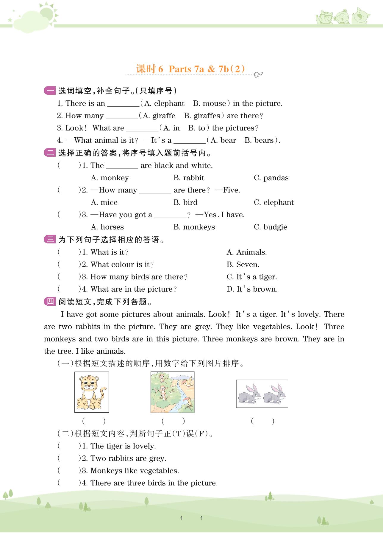 2021下册三年级英语剑桥版 Unit 1—课时6 Parts 7a & 7b(2)
