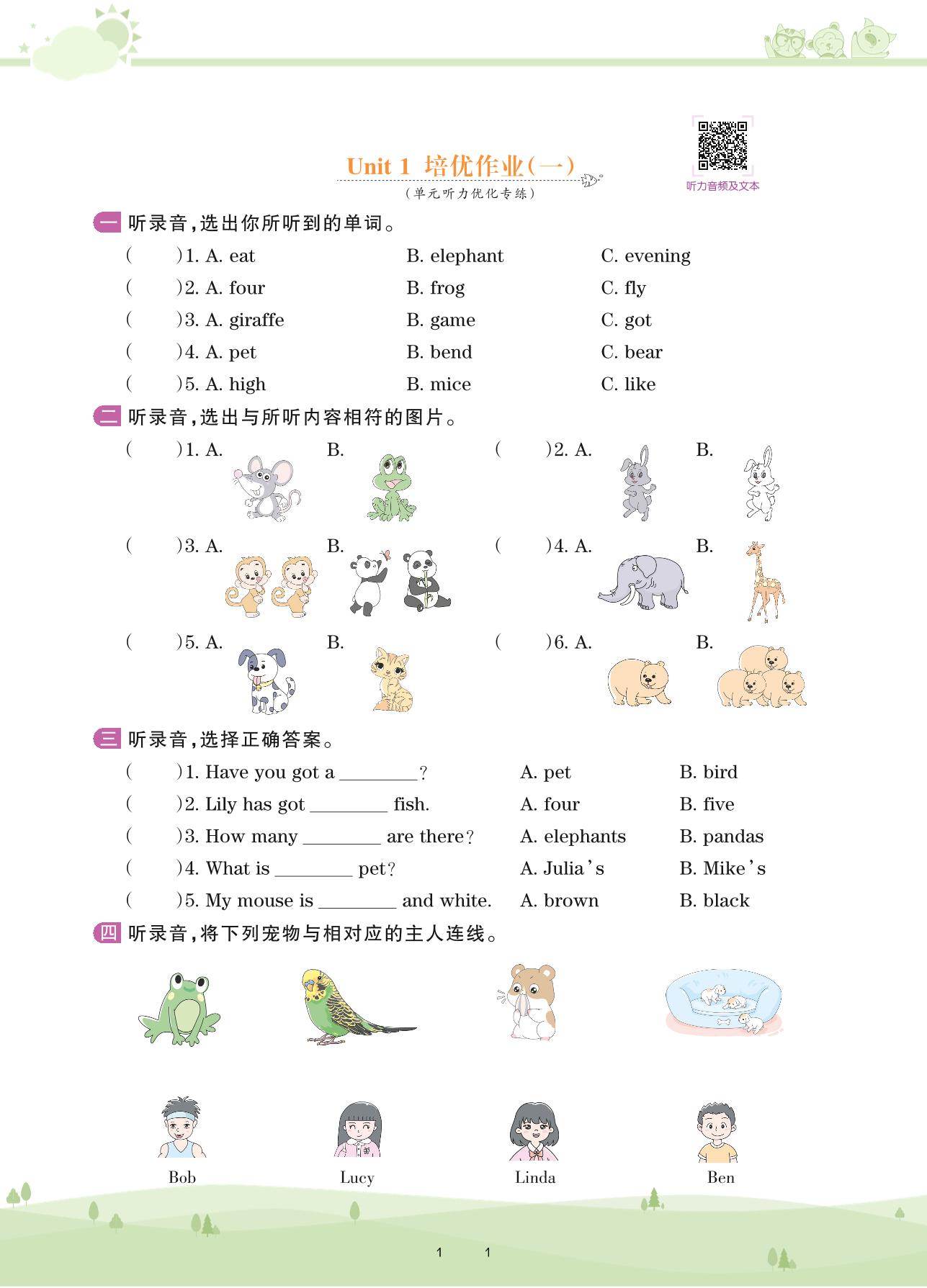 2021下册三年级英语剑桥版 Unit 1 培优作业(一)
