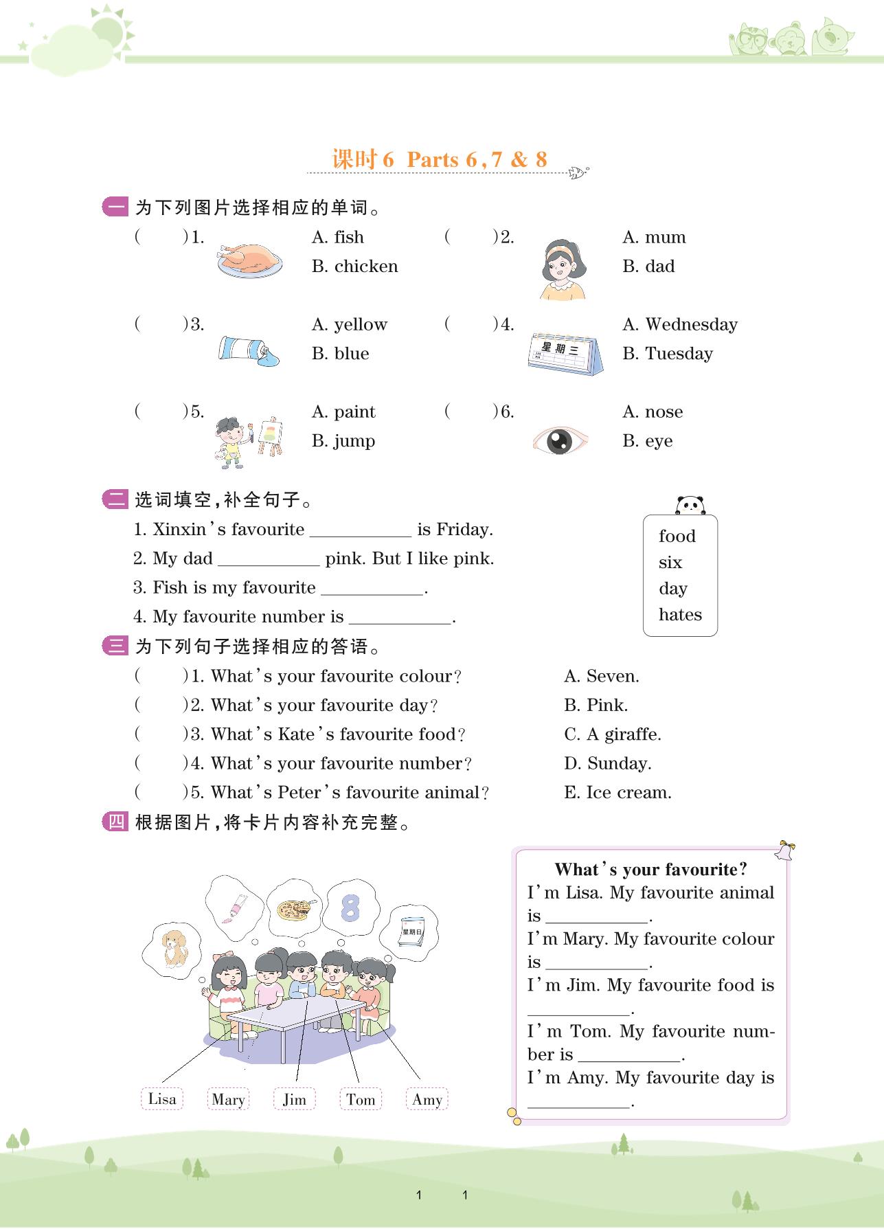 2021下册三年级英语剑桥版 Unit 2—课时6 Parts 6,7 & 8