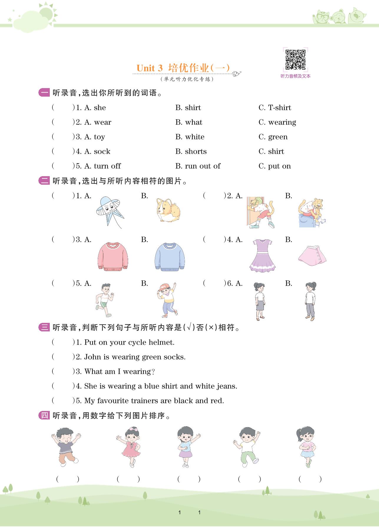 2021下册三年级英语剑桥版 Unit 3 培优作业(一)