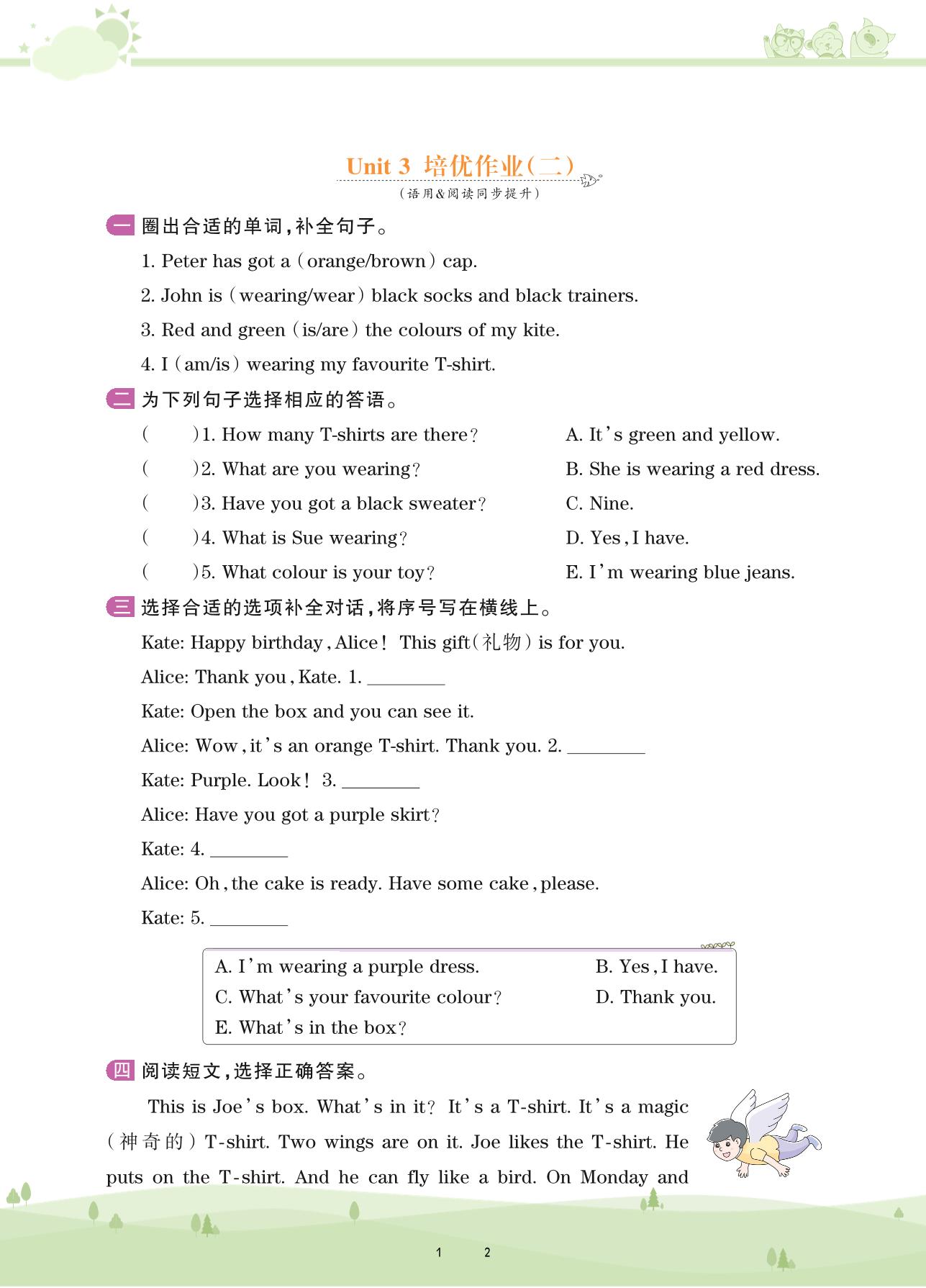2021下册三年级英语剑桥版 Unit 3 培优作业(二)