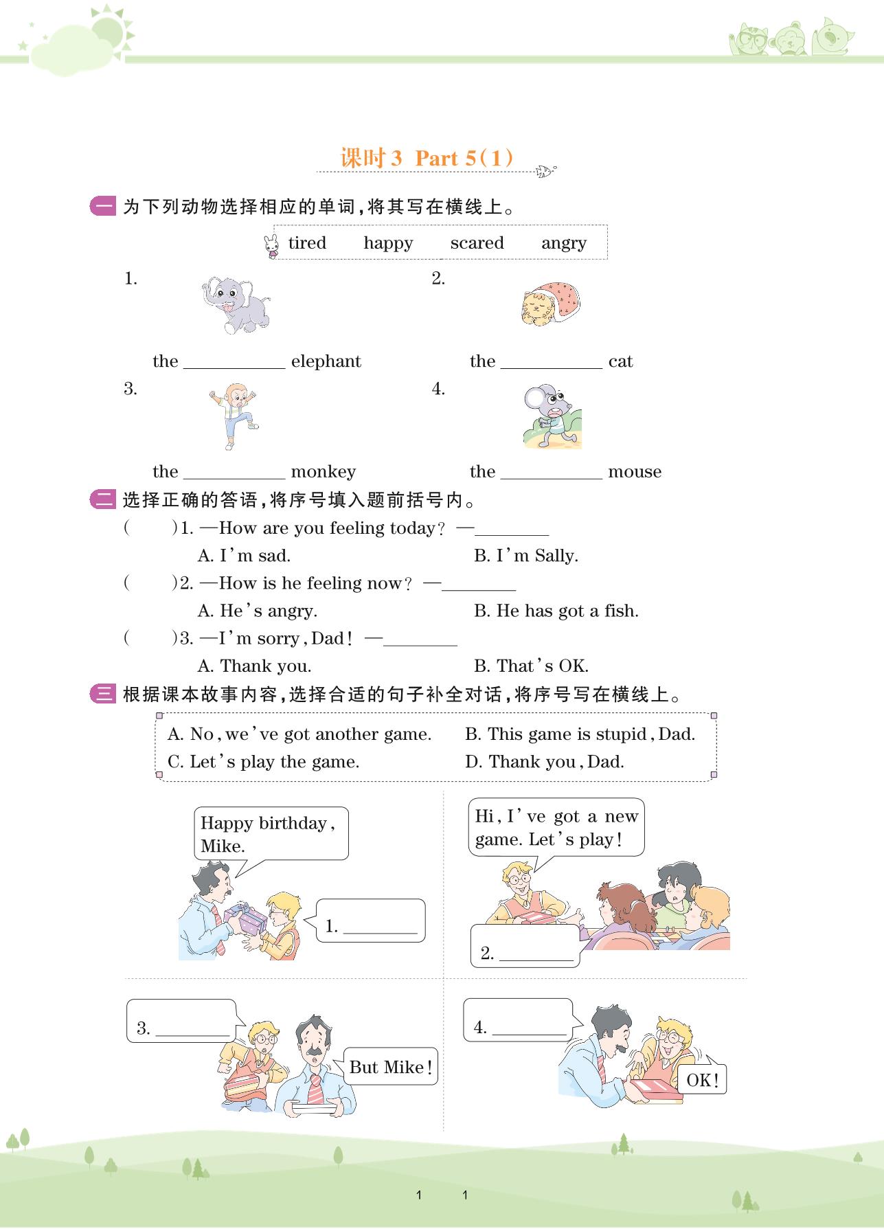 2021下册三年级英语剑桥版 Unit 4—课时3 Part 5(1)