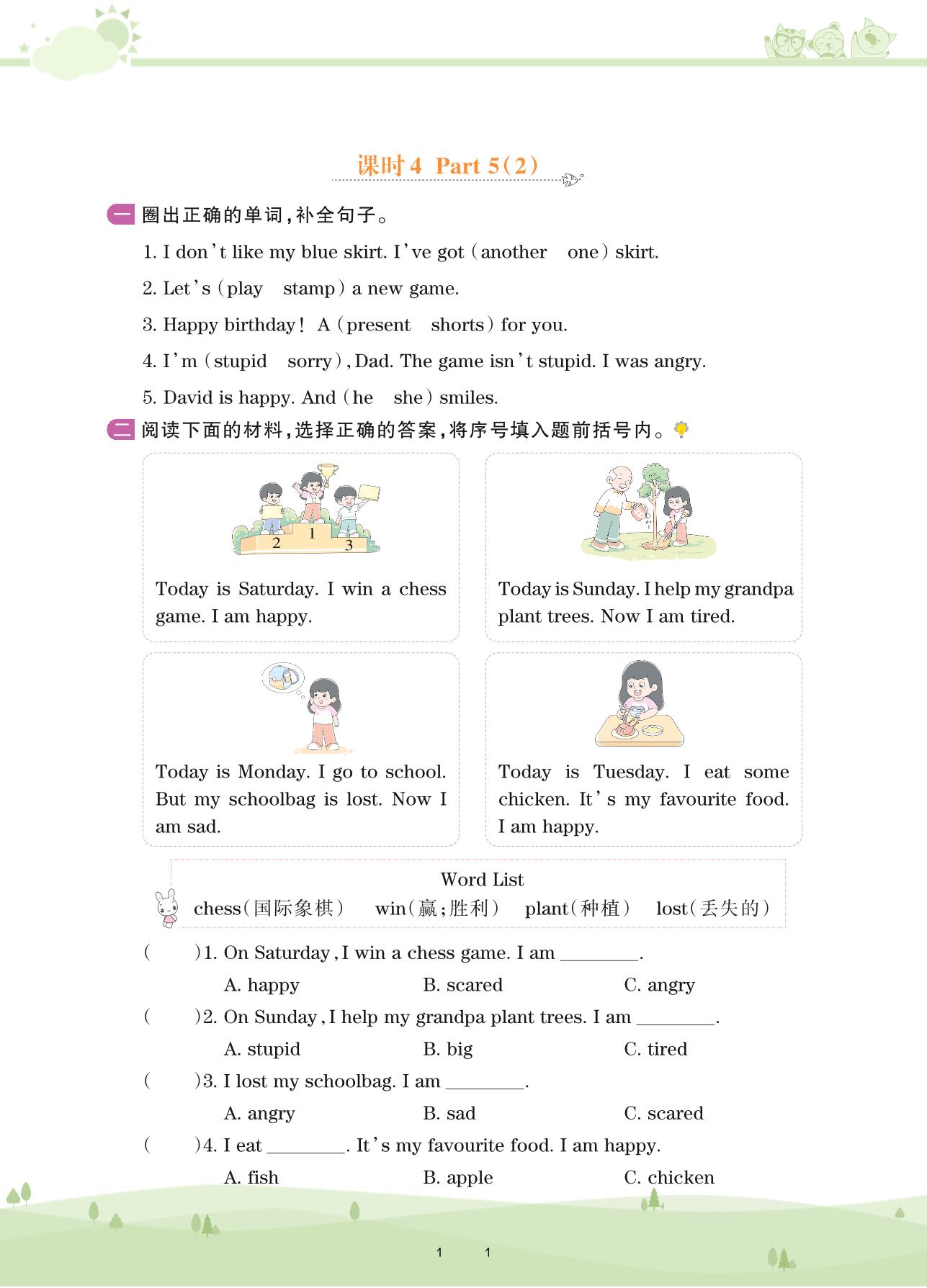 2021下册三年级英语剑桥版 Unit 4—课时4 Part 5(2)